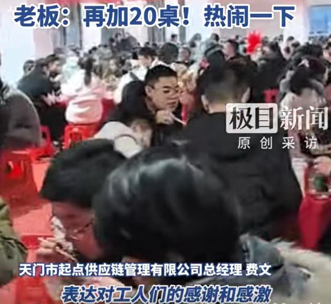团年饭吃出“千军万马”的气势,这事儿你见过吗?1月31日,湖北天门的一场团年宴彻底火了,不是因为这饭有多昂贵,而是因为人多得让人咋舌。原本想着这就够热闹了,结果一清点人数,竟然来了2000多人,老板不得不现场加桌,这种场面在如今的劳务关系里,确实是一股清流。 事情发生在湖北天门,一位做服装生意的老板,心里装着手下的工人们。眼瞅着过年了,老板一拍板,决定请工人连同家属一起吃顿团年饭。这份心意本身就不常见,很多企业顶多发点油米面,能把家属都请来的,说明老板是把工人的生活当成了自家事。为了这顿饭,老板预估了规模,原本备下了188桌,这数字放在任何一家酒店都是大阵仗。可谁能想到,工人们的热情太高,加上拖家带口的,现场直接爆满。188桌根本不够坐,老板二话没说,现场又加了20桌,这才算是把大家都安顿了下来。 看着视频里那乌泱泱的人群,热气腾腾的饭菜,很多人心里都有触动。在评论区里,来自四川的网友“能战胜大海”感慨这样的老板肯定越干越好;山西的网友“绣遥”更是拿出了以往的对比,直言遇到过不少管理奇葩又小气的老板,很少见这么大气魄的。这种口碑的传播,比花多少钱打广告都管用。老板请一顿饭,暖的是人心,聚的是人气。 其实这种大规模宴请工人的做法,并非个例,把时间线拉回到2007年2月,成都也曾有过类似的经典案例。当时成都某工地的老板,为了慰藉辛苦一年的民工兄弟,摆下了175桌酒席,宴请了2600名民工。那个年代的12万元,购买力和现在不可同日而语,老板舍得掏这笔钱,确实被称为四川首次大规模民工团年宴。当时的菜单也是实打实的,麻辣鸡腿、烧三鲜等22道硬菜,据厨师谢朝旭回忆,光是列这个菜单就耗费了一天的心思,为的就是让大家吃得饱、吃得好。 在那次成都的宴席上,有个叫胡德胜的民工说过一句特别实在的话:“从未奢望老板请团年。”这句话道出了多少劳动者的心声。除了吃喝,现场还颁发了400元的先进奖,钱虽然不算巨款,但在那个物资相对没那么丰富的年代,这份荣誉和实惠足以让人记一辈子。 对比这两个案例,一个是十几年前的工地,一个是现在的服装厂,地点不同,行业不同,但内核是一样的。都是在劳动者最需要关怀的时间节点——春节前夕,给出了一份沉甸甸的尊重。2007年的那次宴请,被誉为“首次大规模”,是因为在那个时代,这种公开的、大规模的对底层劳动者的尊重还比较稀缺;而如今湖北天门这位老板的做法之所以引发热议,是因为在快节奏的商业社会中,依然有人愿意慢下来,把工人当家人看。 从成都的2600人到天门的2000人,数字的背后不仅仅是人头数,而是2000多个家庭。服装老板请家属,工地的民工领奖金,这些具体的动作都在传递一个信号:员工的付出是被看见的。对于职场人来说,这种故事不仅仅是看个热闹,它其实提供了一种观察职场关系的视角。真正稳固的关系,从来都不仅仅是冷冰冰的劳动合同,往往还夹杂着这些充满人情味的瞬间。 天门这场团年饭,多加的20桌,装的是饭菜,留的是人心。这给所有管理者提了个醒,在这个讲究效率的时代,有时候“慢”一点,“笨”一点,多花点心思在人的身上,回报可能远超你的想象。对于咱们普通打工人来说,遇到这样的老板,确实是福气,新的一年,干活也更有劲头。 以上内容仅供参考和借鉴