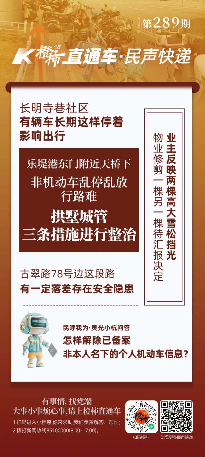 上城区小营街道回复:收到反映后,小区物业已给这辆车贴上通知提醒。下一步会联系这户居民,让他尽快移车。