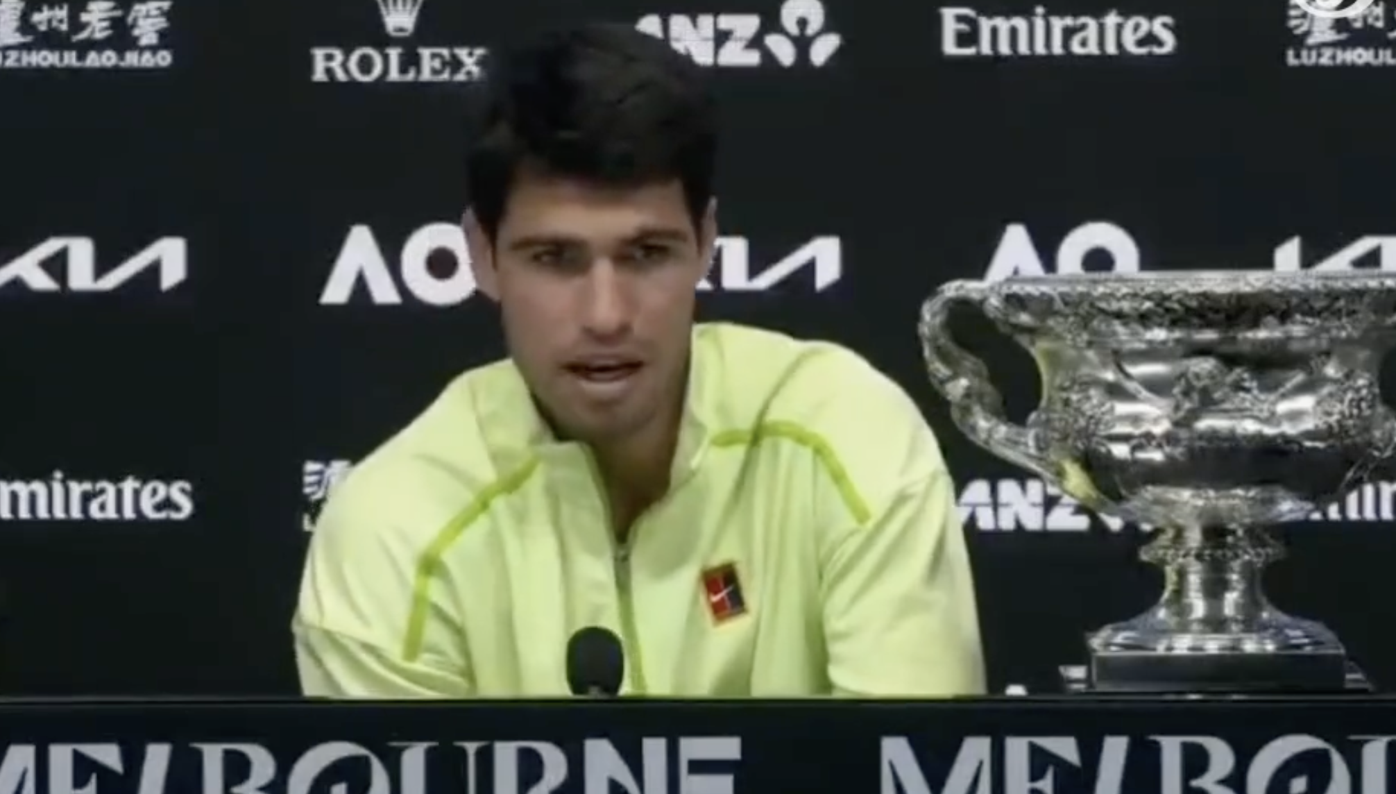 阿尔卡拉斯:“就像我在颁奖致辞里说的,他所做的一切极具感召力,不仅激励着所有网球运动员,也激励着所有体育健儿,甚至包括我自己。