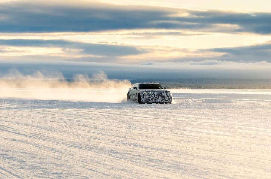 捷豹全新电动四门GT谍照曝光 外观上,前脸 用的垂直封闭格栅,格栅+立体横向饰条,新品牌LOGO嵌入格栅,LED大灯组造型独特,前包围是运动三段式布局。 侧面,用蝴蝶门,腰线平直+粗犷,隐藏式门把手,车身两侧镶黄铜色手工徽标。 车尾,是无后窗设计+全景玻璃天窗,贯穿式尾灯,尾部设矩形格栅,跟前脸相呼应。 动力上,预计总功率超1000马力,前轴单电机驱动,前轴电机输出350马力。后轴是双电机布局,后轴双电机总共输出950马力。 预计用120度大电池组,支持超快充技术。EPA续航约643.7公里。 配数字化扭矩矢量控制四驱系统,既有后驱灵活性,也有四驱安全性,扭矩分配响应频率高,冰湖赛道实测转向精准。 基于专属JEA纯电架构,车身重量分配50:50。空气悬架+倍适登自适应减振器。前悬是双叉臂结构,日常开的舒适性对标XJ。漂移操控乐趣对标F-Type。 最后,捷豹这款新电动四门GT主要优点在:三电机千匹马力、50:50配重、高端底盘配置、大电池长续航+快充,还有独特造型,兼顾舒适和操控。 短板:无后窗、蝴蝶门会影响日常使用便利性,车重和能耗压力大,全新平台和激进设计可靠性有待时间验证。