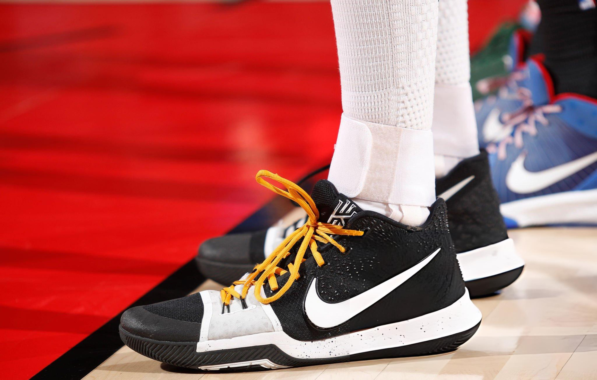 Jarrett Allen 今天上脚了一双品相较新的 Nike Kyrie 3!终于换下战损版啦!