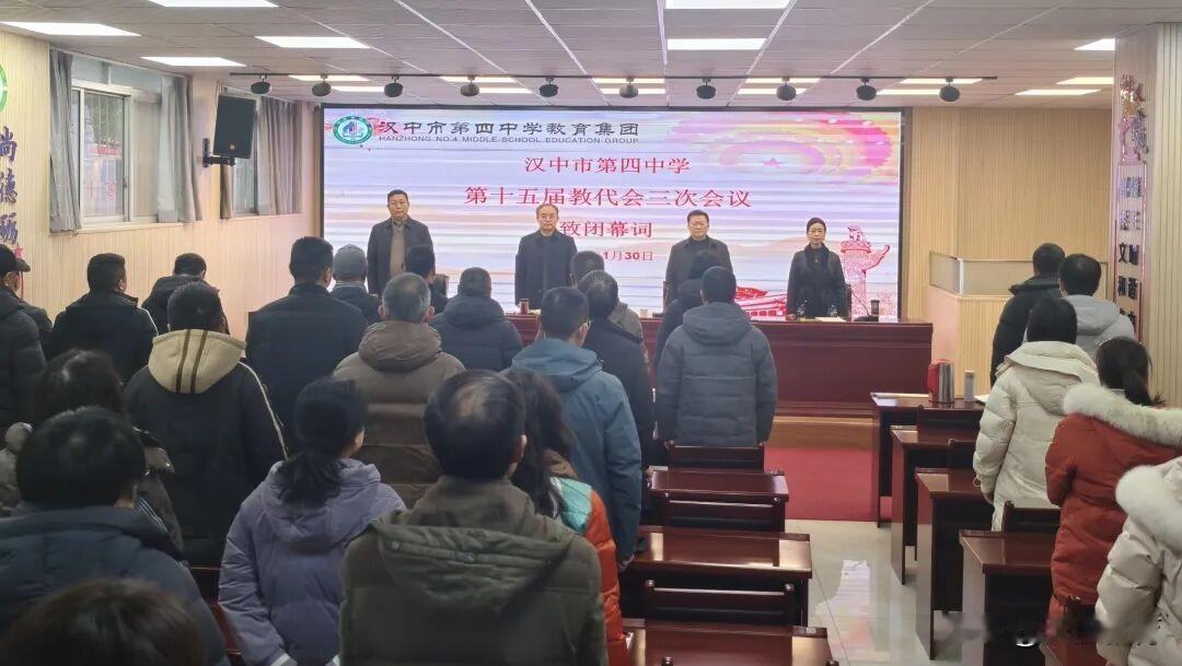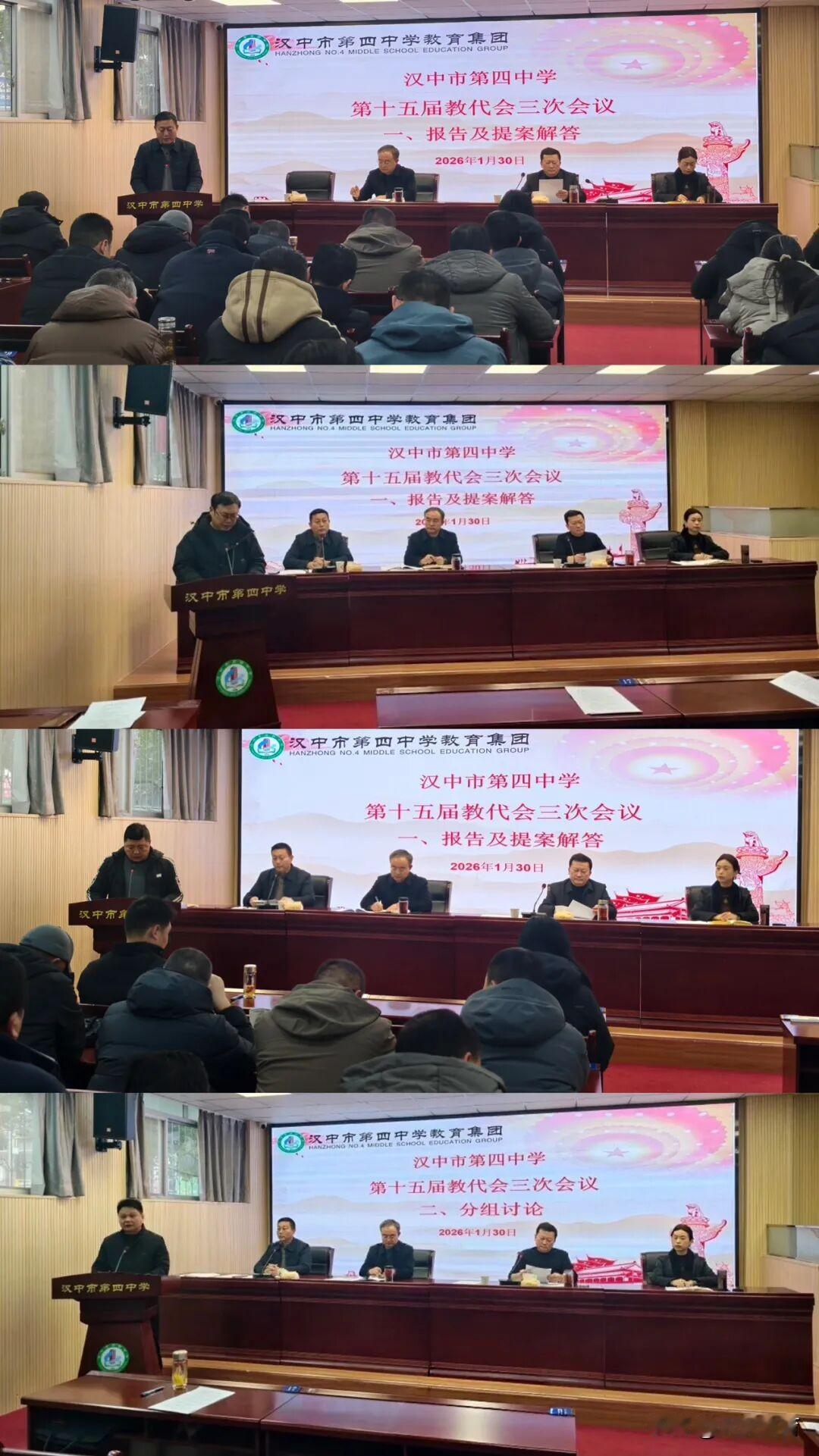 1月30日下午,汉中市第四中学第十五届三次教职工代表大会隆重举行,全体教代会代表肩负使命、齐聚一堂,以民主议事凝聚发展合力,以务实担当共绘教育蓝图。 大会开幕式议程规范有序。在核实代表人数、介绍莅临领导后,学校党总支书记杨军利致开幕词,他回顾了学校过去一年来的办学成效,激励全体教职工砥砺前行,并宣布教代会开幕。伴随着雄壮的国歌旋律,大会正式拉开帷幕。 首先,汉台区教育工会副主席李安民发表讲话,他对汉四中一年来的工作给予了高度肯定,也为学校发展指明方向、寄予厚望。 校长刘烆作学校工作报告,全面总结过往工作亮点,系统部署下一阶段教育教学、校园建设等重点任务;工会主席王晓刚作工会工作报告;总务处主任张治国作学校财务工作报告及工会财务报告;副校长陈康利作2024年度教代会提案落实情况及2025年度提案征集解答报告;副校长田朝伟详细解读学校新的办学章程(讨论稿)。 分组讨论环节氛围热烈务实,各小组代表围绕 “四个报告” 及章程(讨论稿)展开深入研讨。代表们结合自身教育教学实践与岗位体验,各抒己见、建言献策,提出了一系列贴合学校实际、富有针对性的意见建议。主席团认真梳理汇总各组讨论成果,对相关决议草案进行优化完善。 随后,大会庄重审议表决通过了 “四个报告” 及办学章程(讨论稿),并组织开展学校领导干部民主测评。 副校长高珊致闭幕词,她号召全体教职工将会议精神转化为履职尽责的实际行动,凝心聚力、锐意进取,共同推动学校发展再上新台阶。大会在激昂的《国际歌》声中圆满落幕。 此次教代会是学校民主政治建设的重要实践,更是凝聚人心、共谋发展的关键契机。未来,汉四中将持续发挥教代会民主管理职能,依托工会桥梁纽带作用,深耕教育教学主业,关心关爱教职工成长,以 “团结、进取、求实、创新” 的精神风貌,奋力书写汉台教育高质量发展的崭新篇章!
