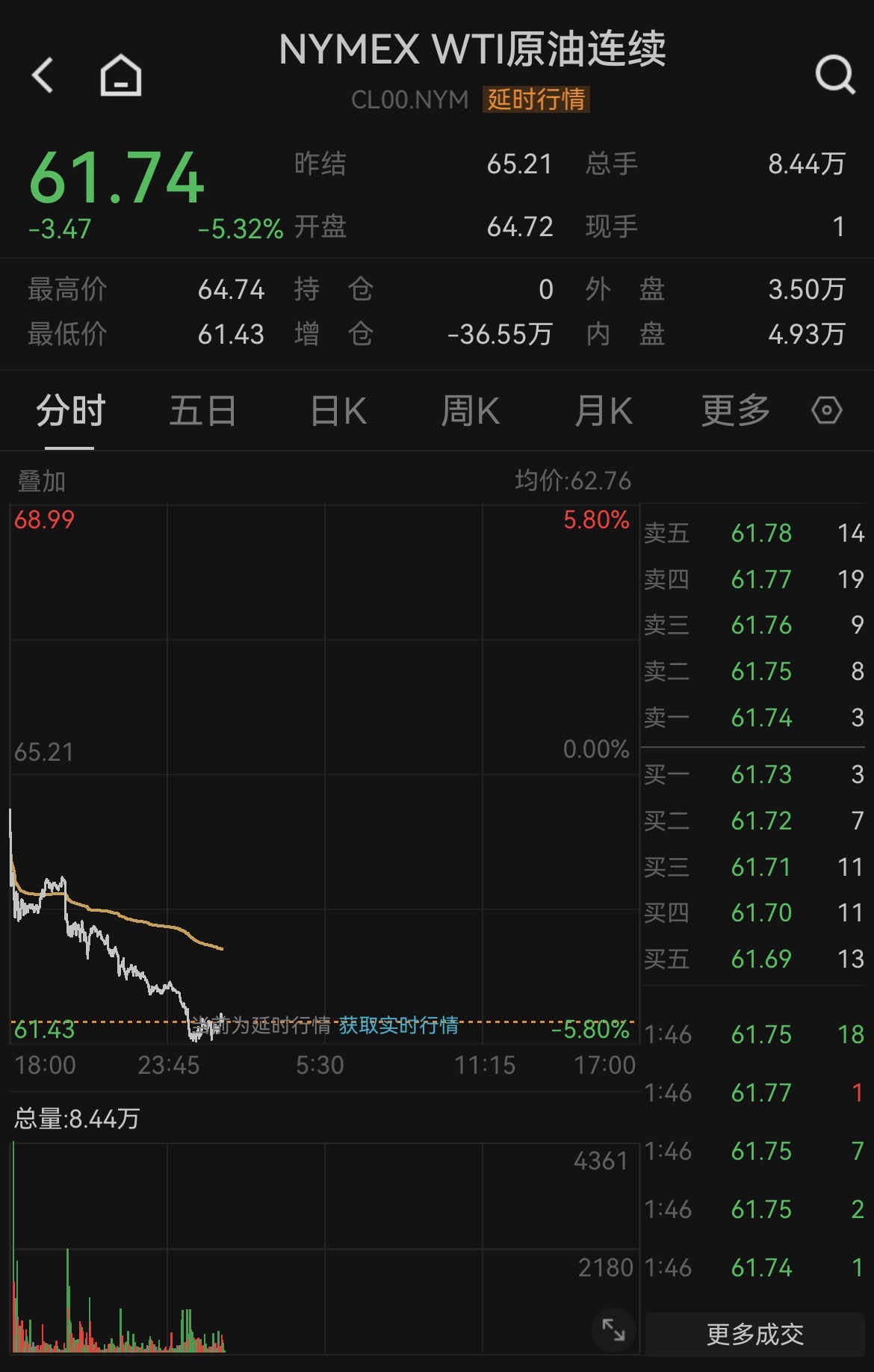 上证报中国证券网讯(林玉莲记者徐锐)2月2日盘中,布伦特原油期货连续(当月)合约报价跌破66美元/桶,WTI原油连续(当月)合约报价跌破62美元/桶,跌幅均超5%。