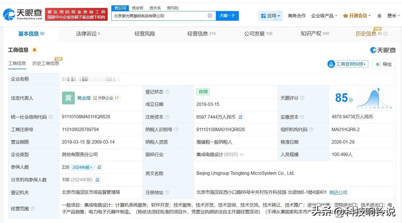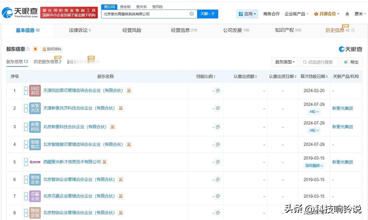 【小米智造基金等入股智能物联芯片研发商紫光青藤】 天眼查App显示,近日,北京紫光青藤微系统有限公司发生工商变更,新增北京小米智造股权投资基金合伙企业(有限合伙)、深圳市创新资本投资有限公司等为股东,同时,注册资本由约5921.05万人民币增至约6597.74万人民币。 该公司成立于2019年3月,法定代表人为黄金煌,经营范围包括集成电路设计、计算机系统服务、软件开发等,现由天津同启君芯管理咨询合伙企业(有限合伙)、天津新紫共济科技合伙企业(有限合伙)及上述新增股东等共同持股。官网显示,该公司是一家智能物联芯片及解决方案提供商。 天眼查信息: