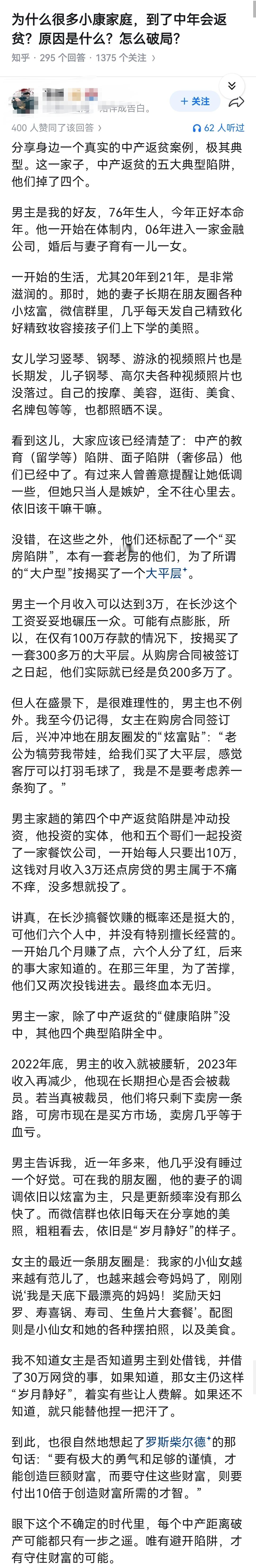 为什么很多小康家庭,到了中年会返贫?原因是什么?怎么破局?