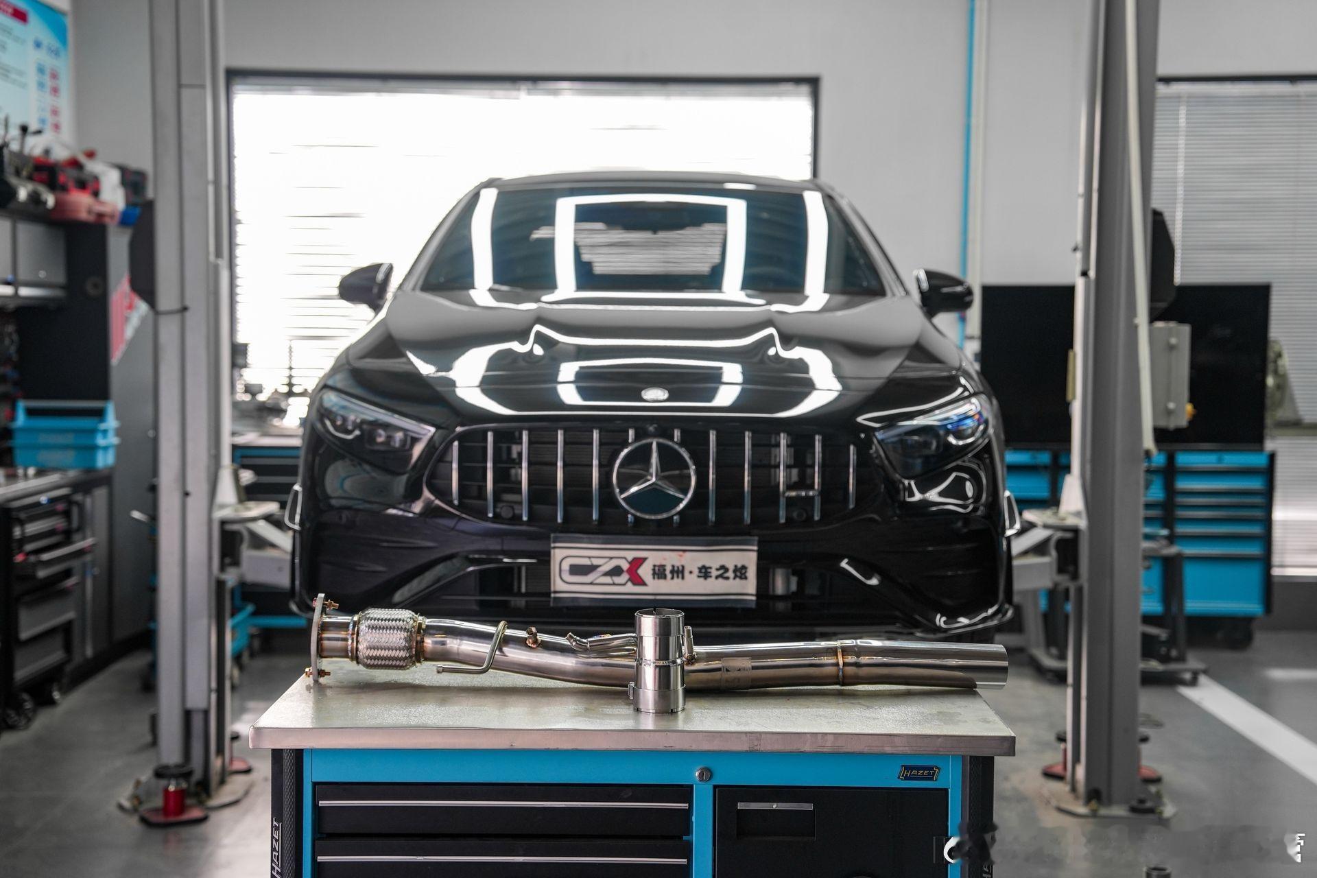 奔驰A35L 、CLA35 、GLB35 AMG 拆除原车带GPF的前管,替换上带屏蔽效果的CSK前管,排气声浪得到有效释放 ⬆️