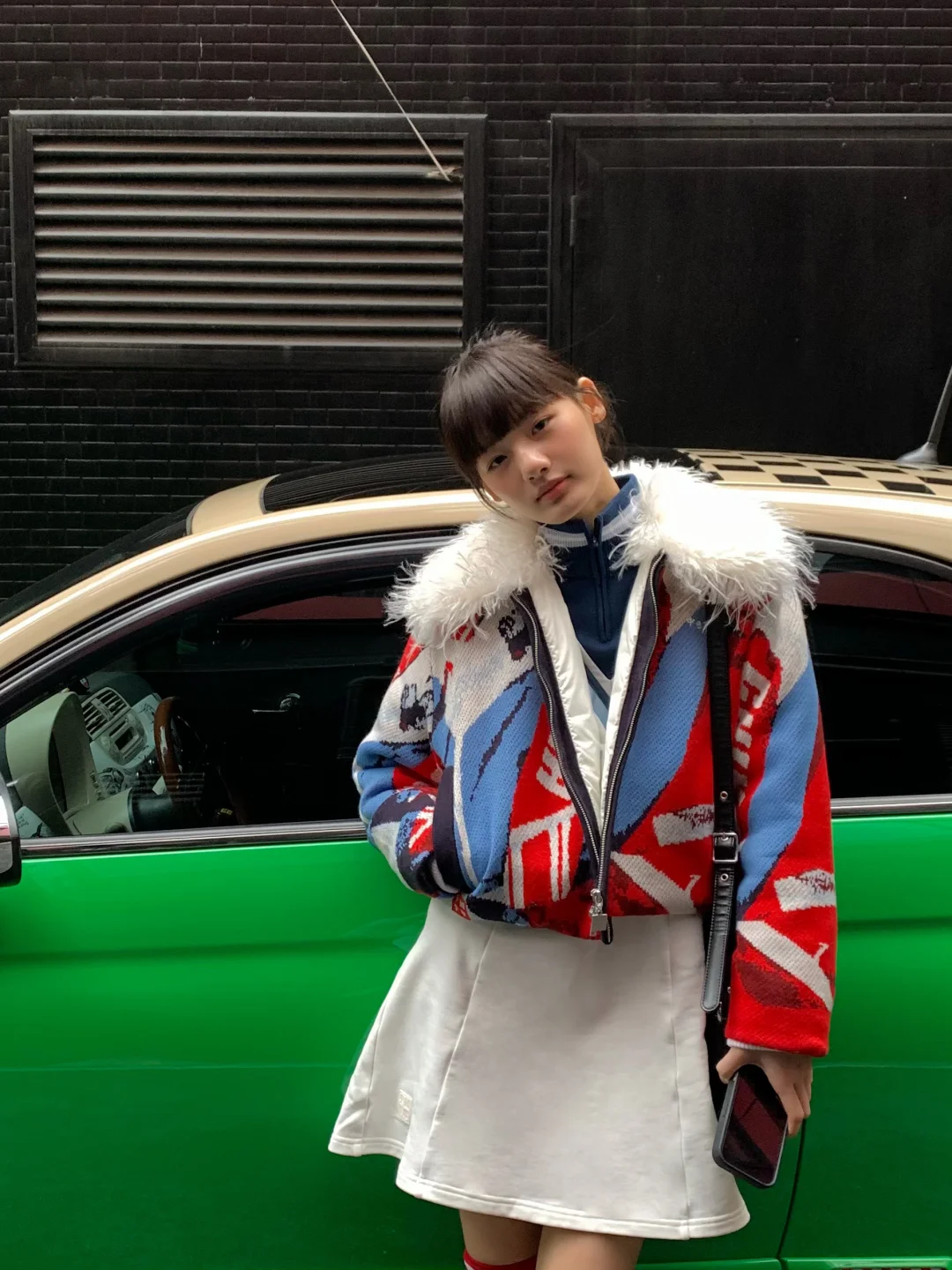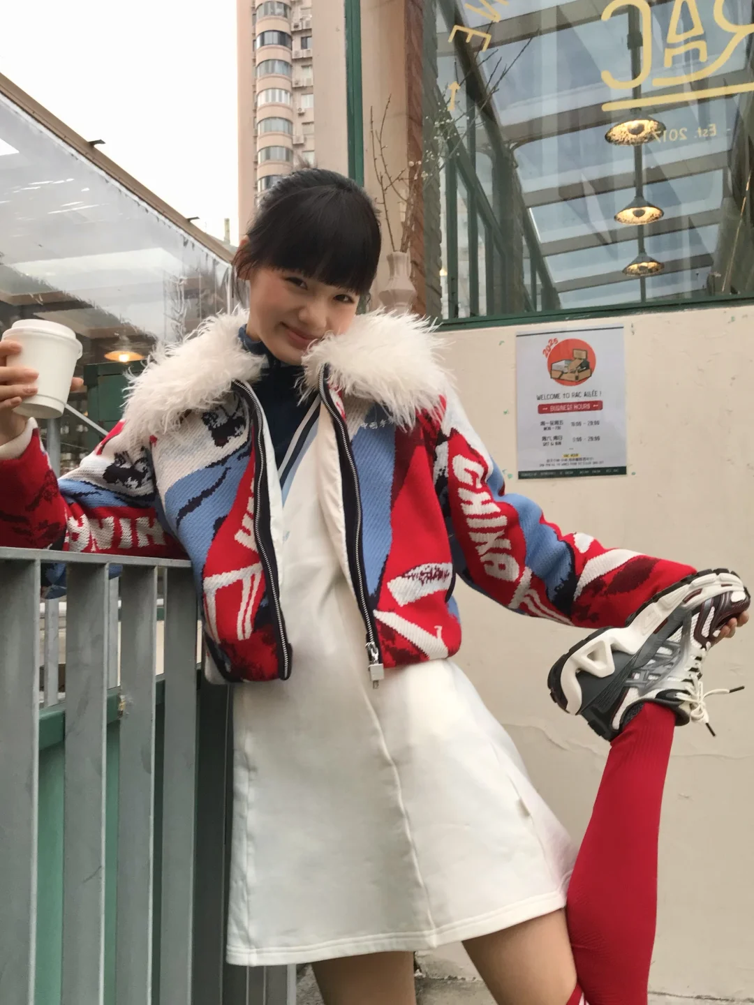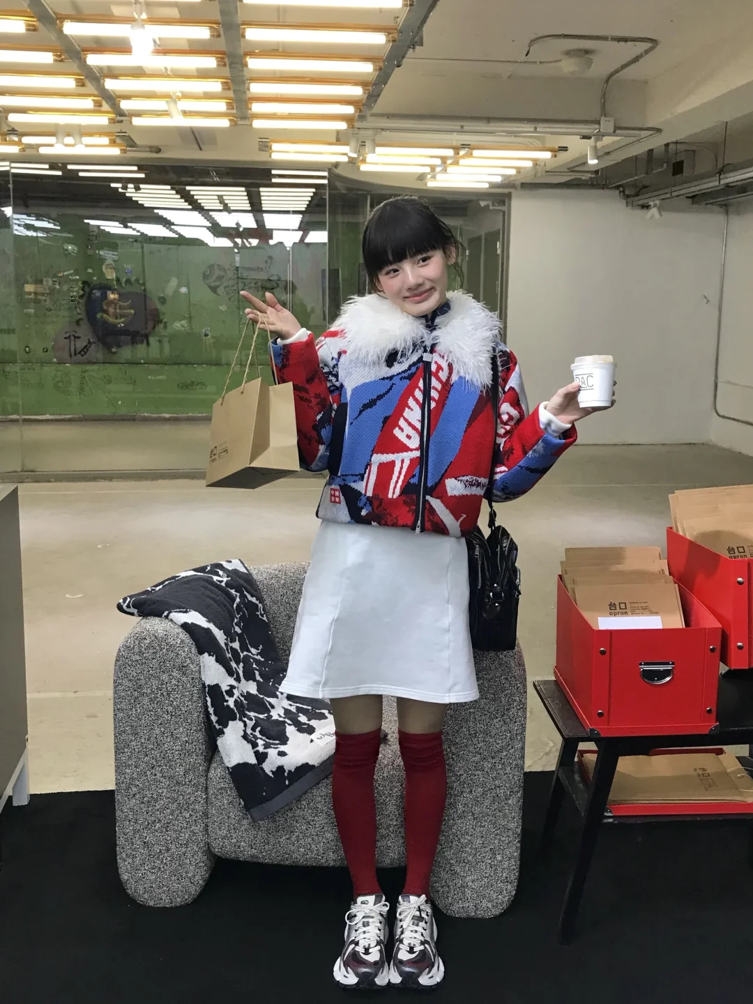 穿上这件“冠军战袍”,外套的毛领+涂鸦印花自带复古滤镜,红白蓝配色像把老电影里的松弛感穿在身上~内搭白色短裙+高筒红袜,甜酷感直接掐得死死的,脚上的老爹鞋刚好和外套配色呼应,细节控狂喜! 新岁开篇,就用这抹热烈中国红,解锁松弛又高级的开运穿搭吧!