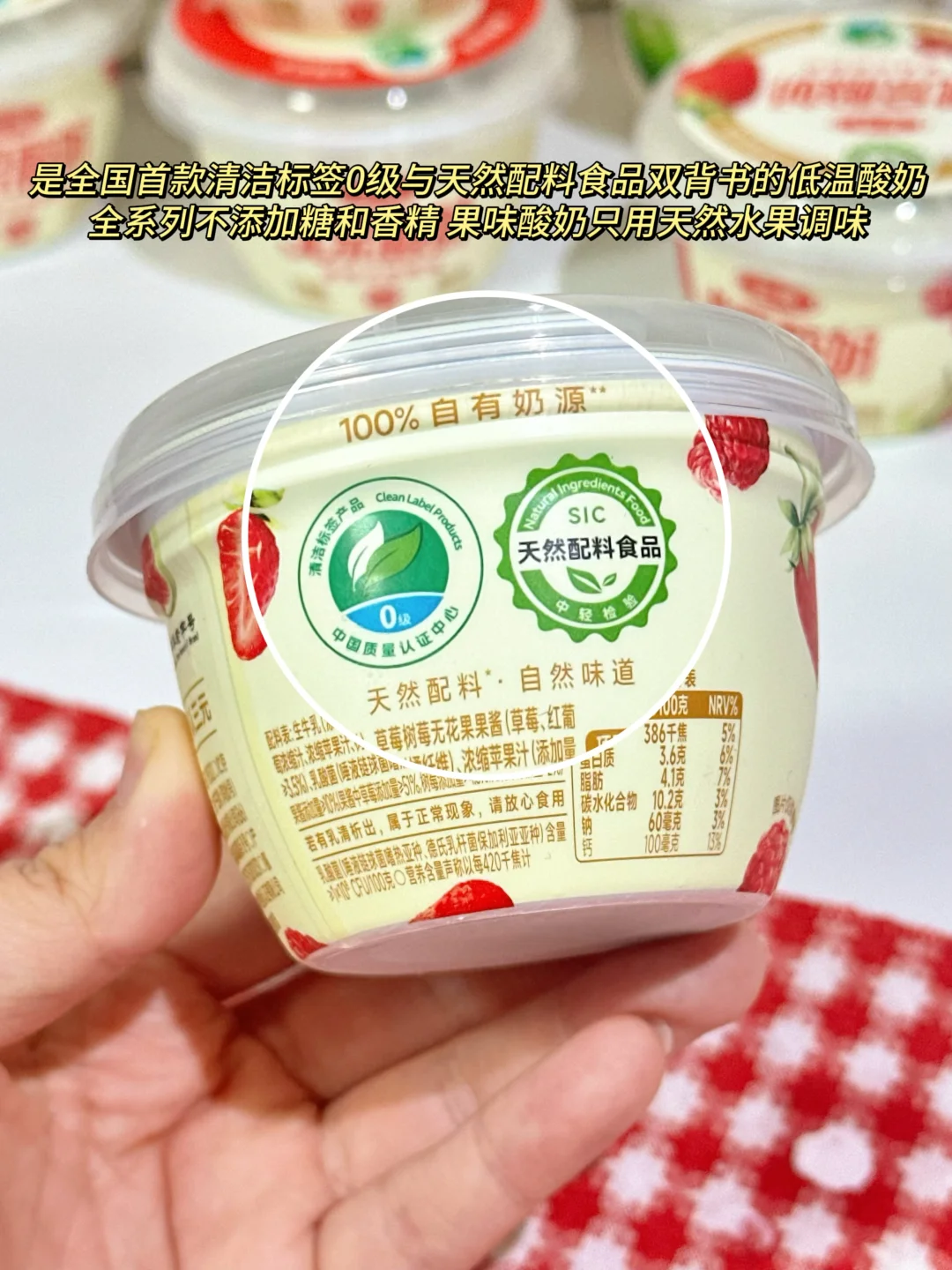 它是全国首款清洁标签0级与天然配料食品双背书的酸奶,配料表肉眼可见的干净,敲放心!!而且100%自有奶源,奶牛散养出来的生牛乳感觉就是很不一样!很好喝!