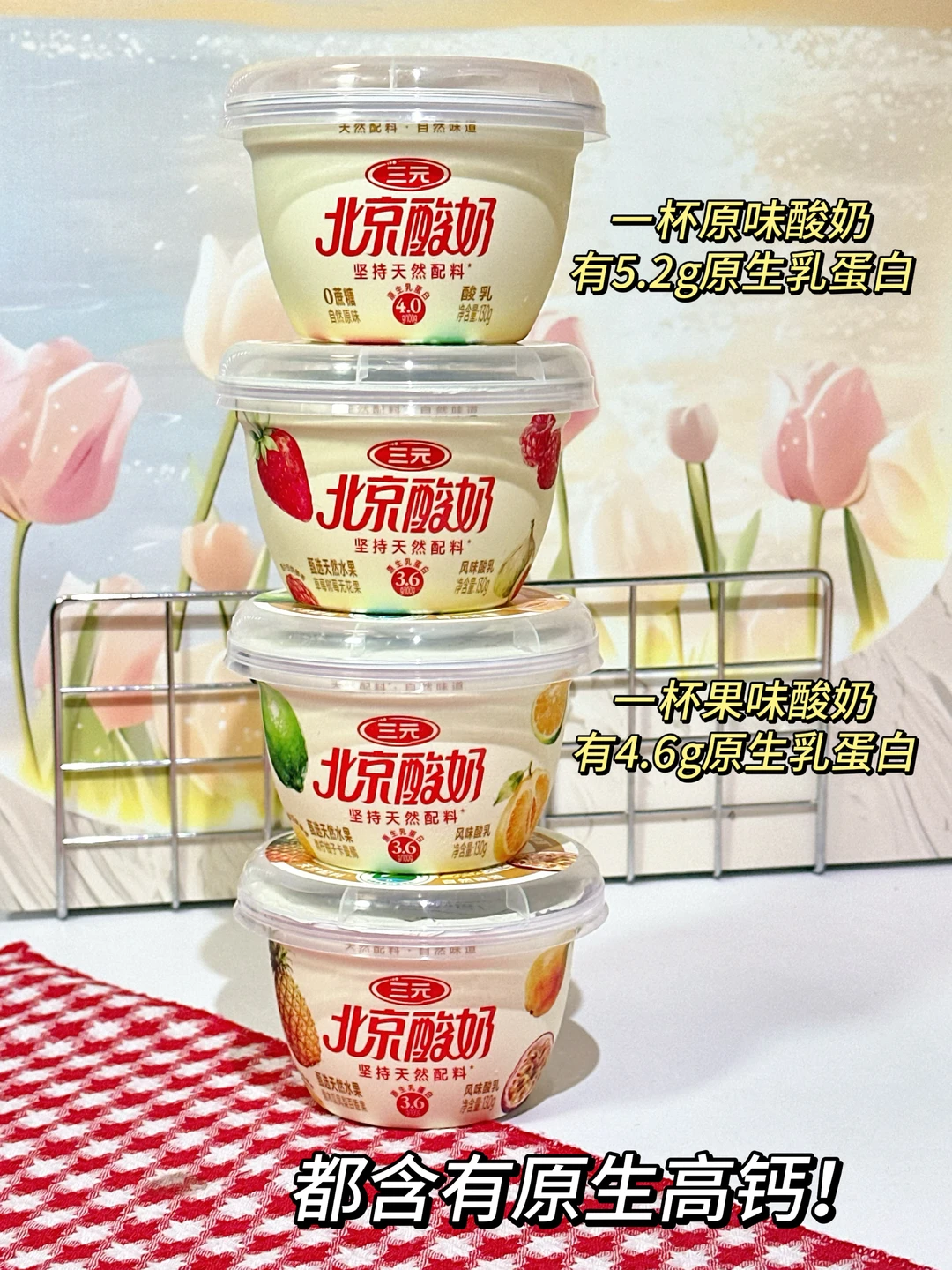 每杯果味酸奶含4.6g原生乳蛋白,原味更高达5.2g