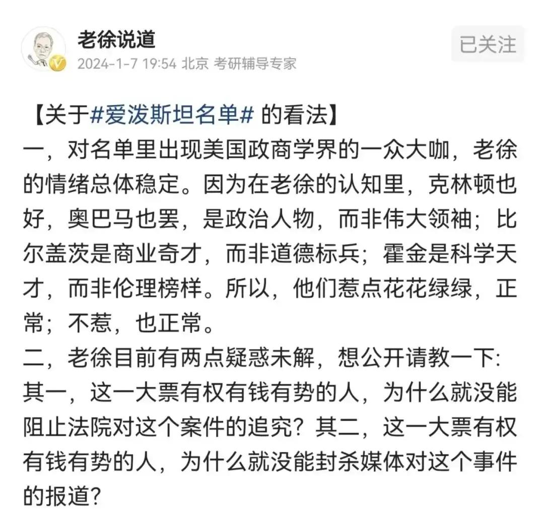 没用,根本没用,美吹彻底流产,美国的意识形态布局塌方了! 牢A透露出的斩杀线,高达还是有点太表面现象了,美国萝莉岛爱波斯坦案一公布,这才是核弹级的。 某宣传还怎么再谈理性,美国萝莉岛爱波斯坦案是美国自己曝光的,现在的理性是不是要去给全世界去讲了,人家听吗? 唯一的作用就是让美吹们有了哪么一点点底气捡起几个陈词,拔乱反正,客观,狂欢。 有用吗?美国萝莉岛爱波斯坦案一公布,不是自找没趣吗! 文明灯塔、民主灯塔、人类天堂谁还信。 美吹的主要目标是中国人,让中国人把美国当世外桃源,文明、民主的标杆,现在真相己大白于天下,除非蛾扑火者,剩下的只有美吹自己填坑了。 敢肯定,从此以后,这帮公知和美吹张不了嘴了,因为老百姓己明真相,被唤醒了!美国精神分析 美西方舆论战 意识形态批判 美西方舆论陷阱 美国控制言论 如何评价胡锡进 爱泼斯坦案为何能引发公众关注