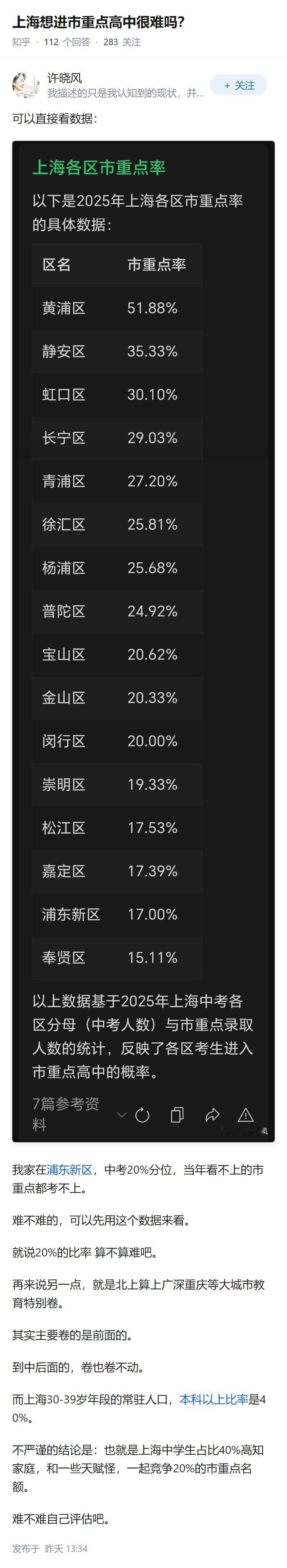 中考要到前15%才能进重本率50%以上的高中。有些只是学校叫重本,比如我家的静安三宝[捂脸哭]