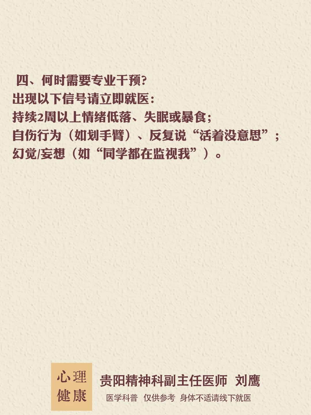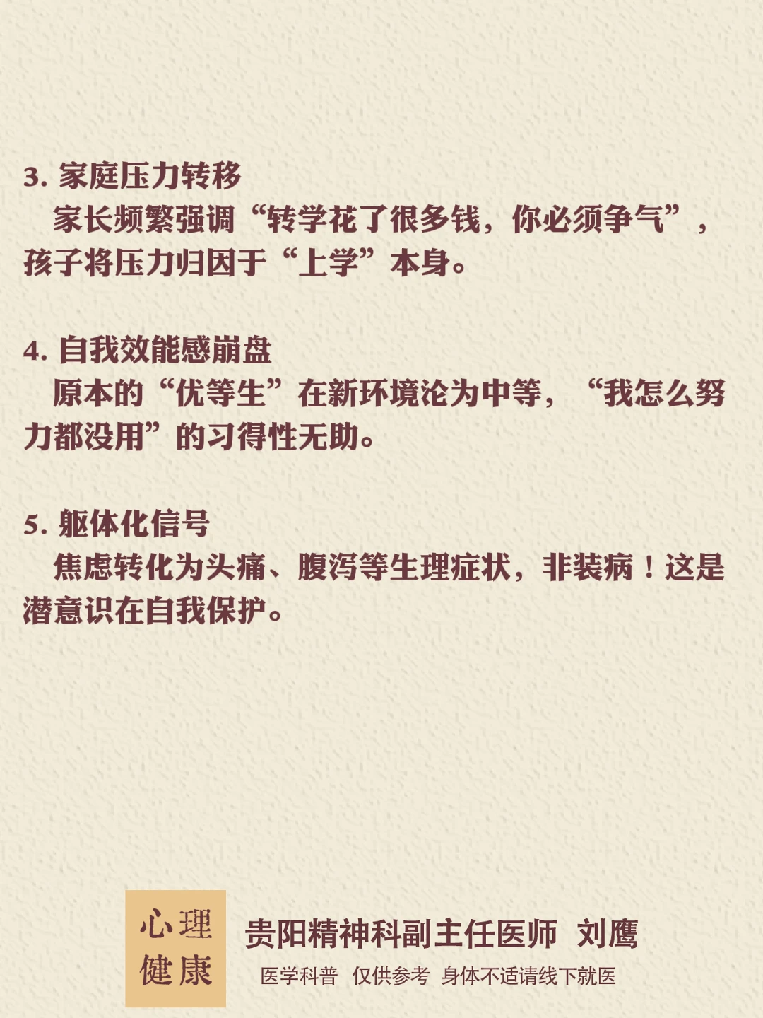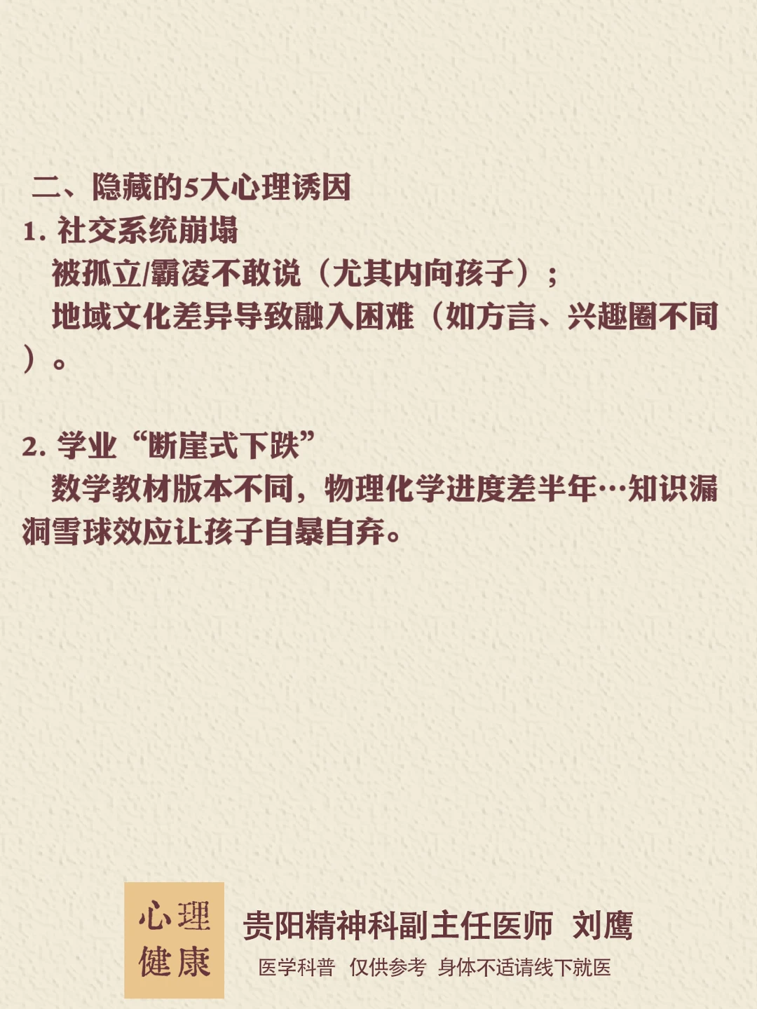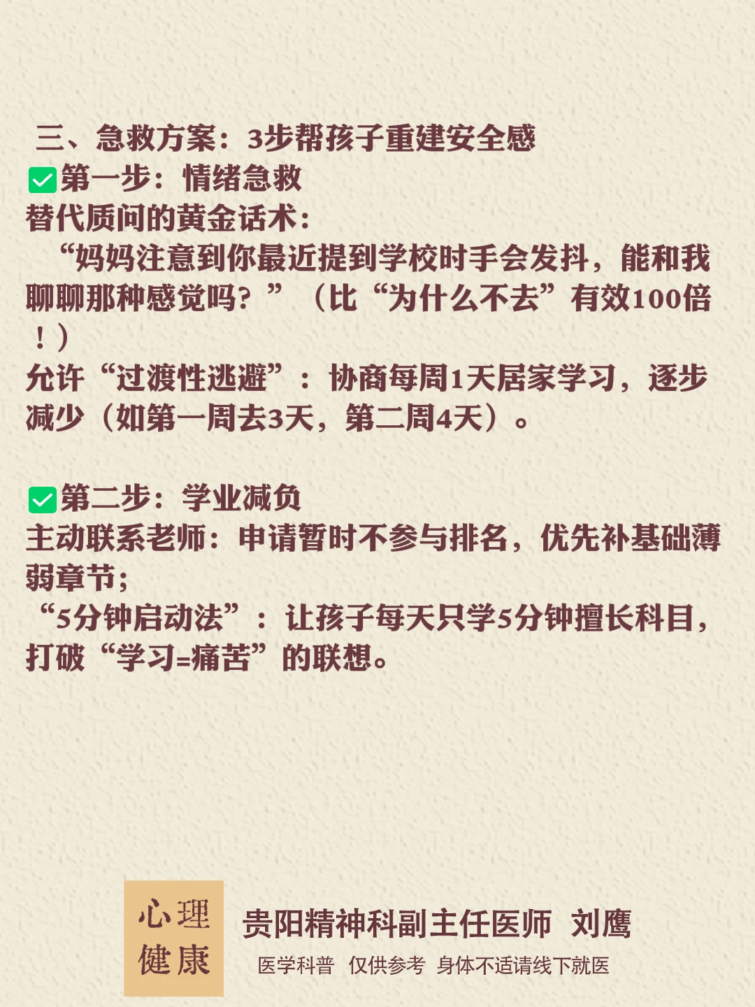贵州的朋友们,大家好,我是贵阳精神心理科医生刘鹰厌学是孩子发出的“求救信号”,而非叛逆!家长的第一反应应是“陪伴”而非“逼迫”。
