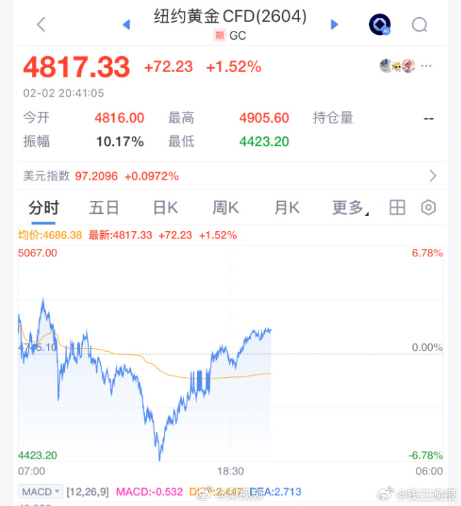 【#金银V型反转#】#国投白银LOF重估基金资产# 黄金#白银#的价格,深“V”了!2月2日晚间,在经历亚洲时段一轮猛烈抛售后,黄金、白银价格开始收复部分跌幅。现货白银价格今日一度跌超15%,截至发稿,跌幅收窄至2%以内!现货黄金也不例外,从跌约10%到如今仅跌超1%。纽约期货黄金转涨。其他贵金属方面,跌幅也明显收窄。(中国基金报)