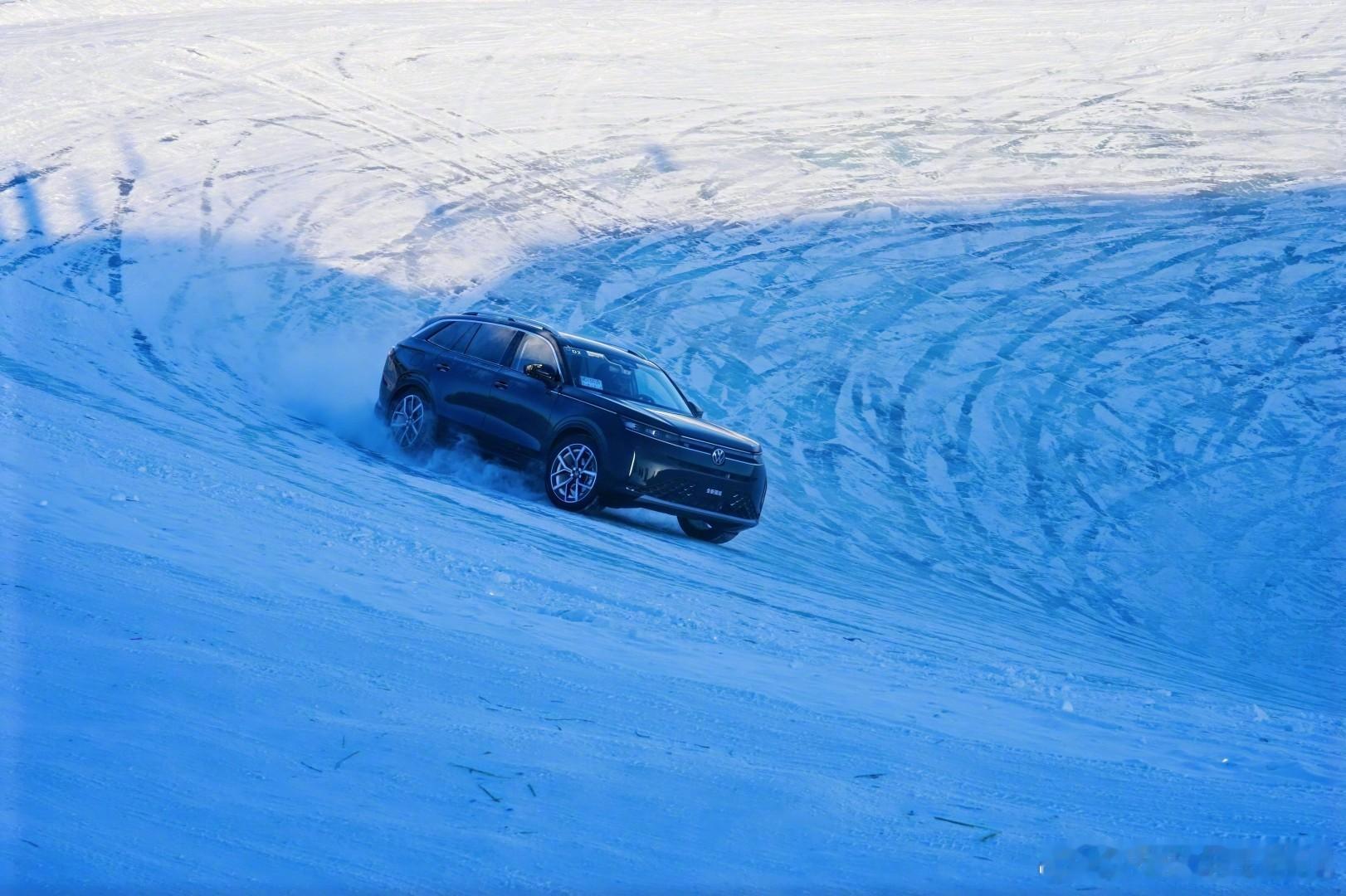真正在这种场景里最容易被注意到的,还是全新揽巡。原因也不复杂,大五座中大型SUV,本身就更考验整车的综合能力。在雪原里开下来,它给人的第一感觉不是“猛”,而是稳。第五代EA888这套2.0T动力在低温下启动、响应都很干脆,没有情绪波动,400N·m的输出在冰面上被控制得比较克制,不会一脚下去就乱蹿。