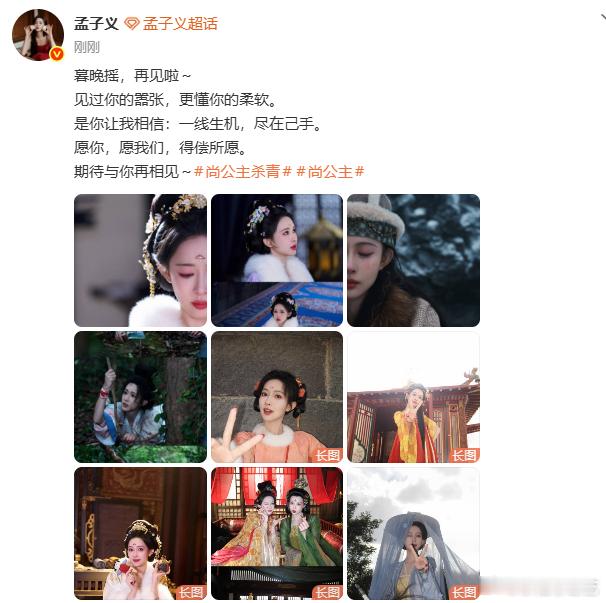 孟子义从淤泥里杀出生机 孟子义发文告别了尚公主感受到了满满的一份意义了呀,从淤泥里面杀出的生机,一定会绽放出光芒的呀,期待这部剧的播出 孟子义发文告别了尚公主