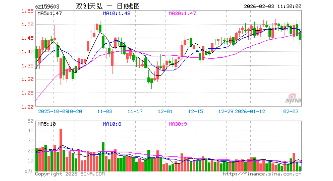 双创龙头ETF(159603)业绩比较基准为中证科创创业50指数收益率,管理人为天弘基金管理有限公司,基金经理为张戈,成立(2022-05-26)以来回报为45.40%,近一个月回报为2.50%。