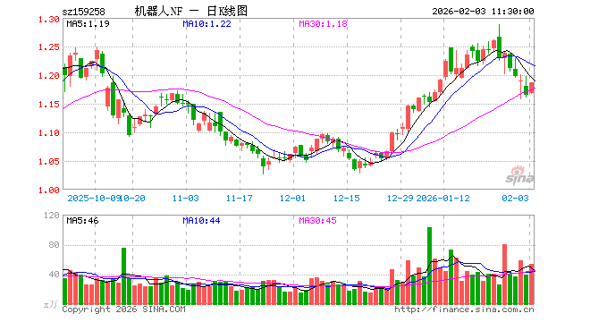2月3日,截止午间收盘,机器人ETF南方(159258)涨1.89%,报1.187元,成交额6407.42万元。机器人ETF南方(159258)重仓股方面,科大讯飞截止午盘涨0.61%,汇川技术跌0.24%,拓普集团涨2.60%,大华股份涨0.16%,大族激光涨6.01%,双环传动涨0.84%,石头科技跌0.06%,中控技术涨4.33%,绿的谐波涨4.16%,机器人涨1.95%。