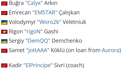 这家土耳其俱乐部在年初进行重组,先将三名选手移出阵容,随后通过签下Rigon"rigoN"Gashi、Volodymyr"Woro2k"Veletniuk和Sergiy"DemQQ"Demchenko转向国际化阵容,但始终难以扭转其在二级线上赛事中的成绩。
