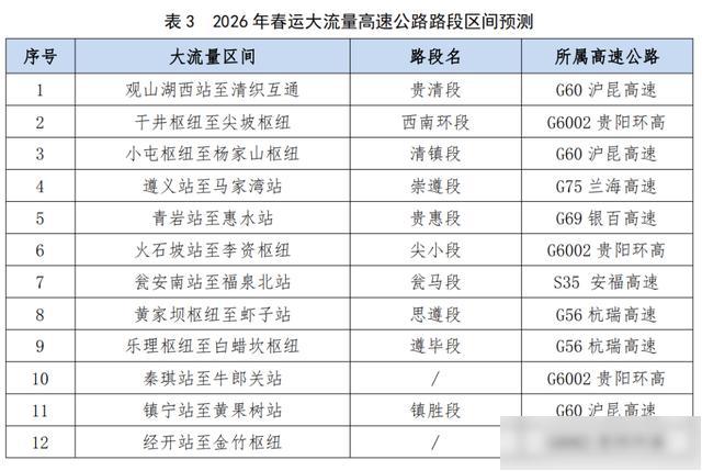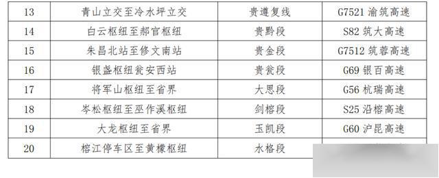 预计东西向、南北向主要通道沪昆高速、杭瑞高速、兰海高速、银百高速和中心枢纽路线贵阳环高等路线运行较为繁忙,20个高速公路大流量路段区间、10个国省干线大流量路段区间。