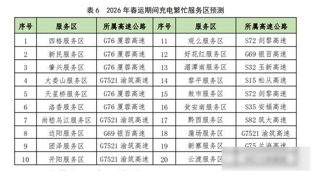 预计龙宫、湄潭南、肇兴服务区等20个服务区流量较大,四格、新民、肇兴服务区等20个服务区充电较为繁忙。