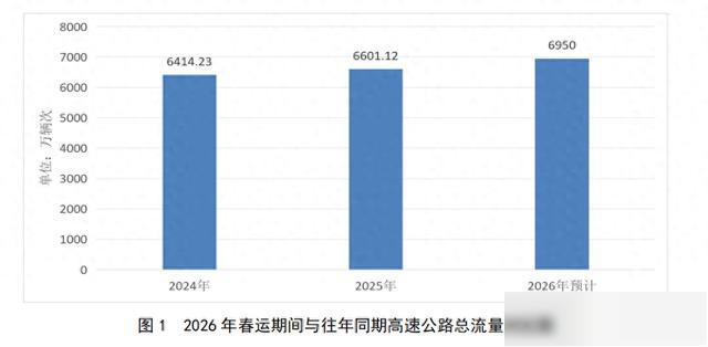 根据贵州省路网中心与省公安厅交管局的数据研判,2026年春运贵州省高速公路出口总流量预计将达到6950万辆次,日均约174万辆次,同比增长5.3%。