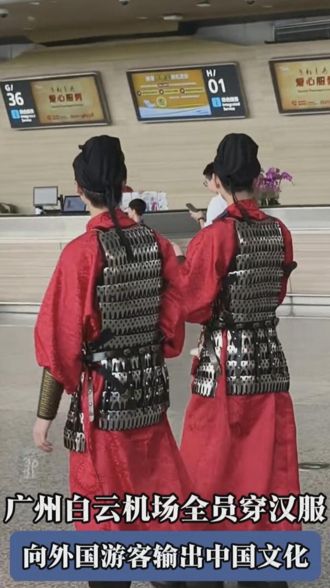 白云机场工人员着汉服出场 近日,多名旅客发布的视频显示,广州白云机场工作人员全员身着汉服亮相,保安化身“武士”,服务台人员则装扮成典雅大方的“大家闺秀”。 汉朝是我国古代盛世,汉服也代表我们中华民族的文化元素。广云机场通过员工着装汉服也是体现当今中国的繁荣昌盛,同时也为我国的盛世做以历史装伴。也为白云机场树立别具一格的美好民族特色,成为游客的文化打卡点。
