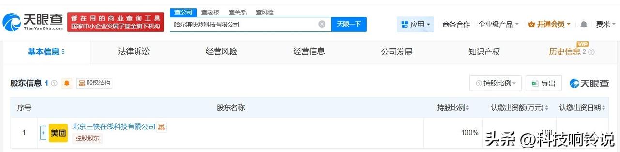 【美团在哈尔滨成立快羚科技公司】 天眼查App显示,近日,哈尔滨快羚科技有限公司成立,法定代表人为王超,注册资本100万人民币,经营范围包括日用百货销售、日用品销售、厨具卫具及日用杂品零售等。股东信息显示,该公司由美团旗下北京三快在线科技有限公司全资持股。 天眼查信息: