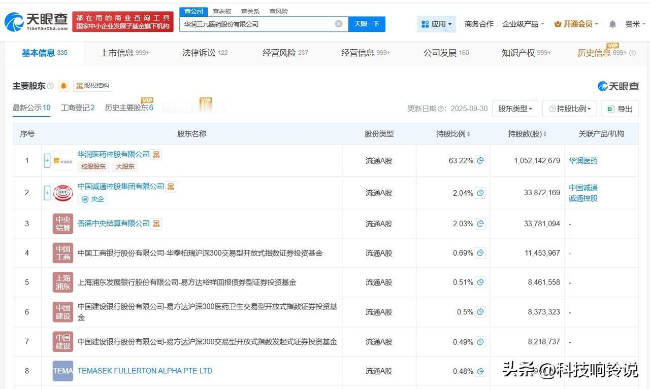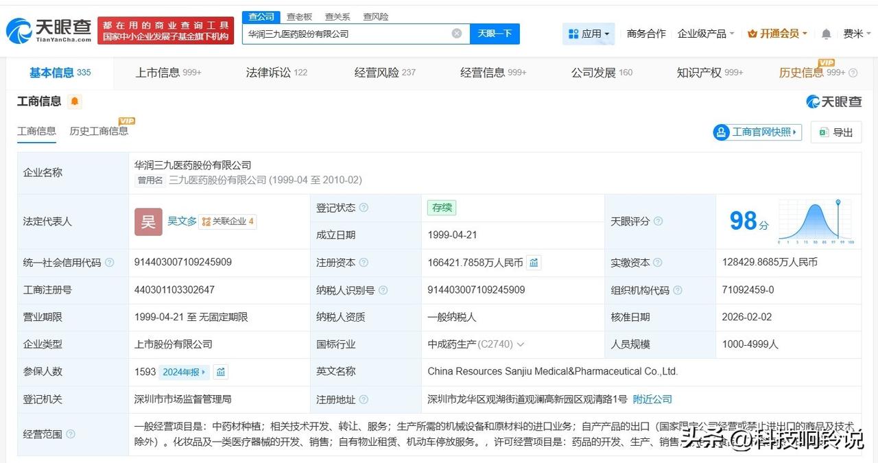 【华润三九增资至16.6亿 增幅约30%】 天眼查App显示,近日,华润三九(000999)发生工商变更,注册资本由约12.8亿人民币增至约16.6亿人民币,增幅约30%。 华润三九医药股份有限公司成立于1999年4月,法定代表人为吴文多,经营范围包括中药材种植、生产所需的机械设备和原材料的进口业务、自产产品的出口等,由华润医药控股有限公司、中国诚通控股集团有限公司、香港中央结算有限公司等共同持股。 天眼查信息: