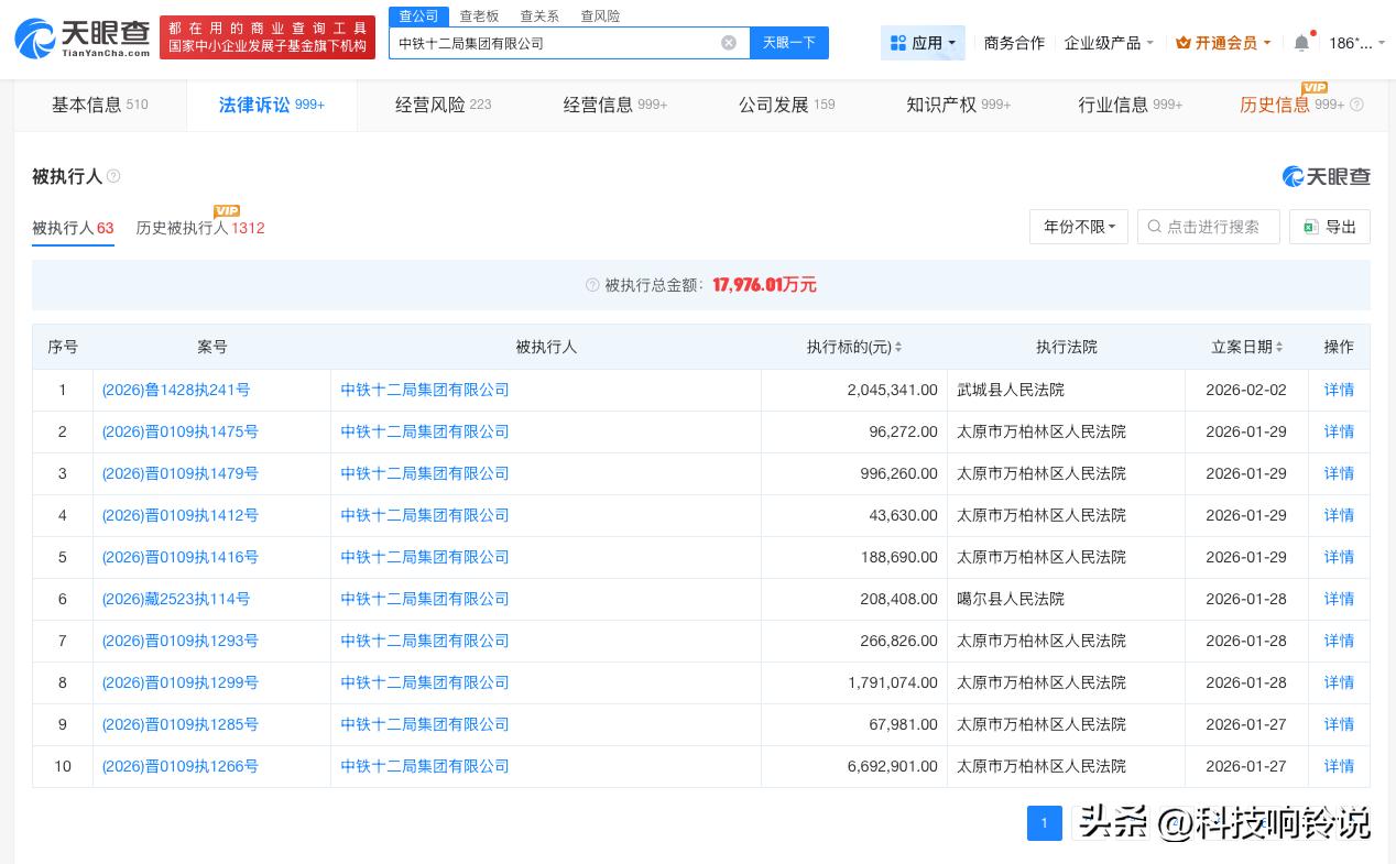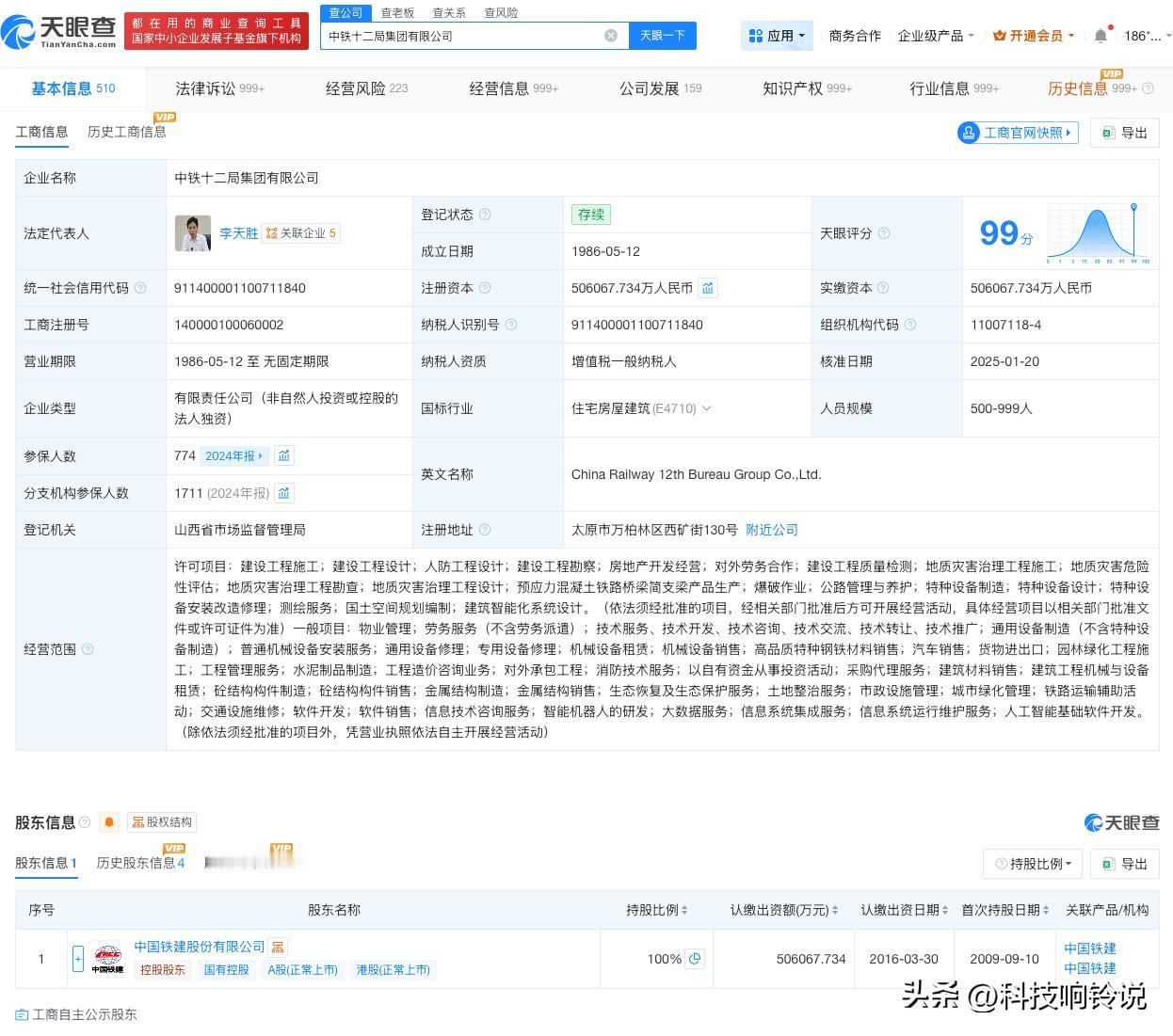 【在建大桥塌落承建方已被多次执行 在建大桥塌落承建方曾因事故隐患被罚】江苏盐城一座在建桥梁垮塌 江苏省盐城市响水县人民政府3日通报,2日17时46分,由中铁十二局承建的连申线月港大桥在施工过程中,发生系杆拱梁塌落事故。目前,事故造成2人重伤,经送医抢救无效死亡,3人失联。 天眼查工商信息显示,中铁十二局集团有限公司成立于1986年5月,法定代表人为李天胜,注册资本约50.6亿人民币,经营范围包括建设工程施工、建设工程设计、人防工程设计、建设工程勘察等。股东信息显示,该公司由中国铁建(601186)全资持股。行政处罚信息显示,该公司名下现存多条行政处罚信息,处罚事由包括随意倾倒建筑垃圾、存在事故隐患等。风险信息显示,该公司现存63条被执行人信息,被执行总金额超1.7亿元。此外,该公司曾因建设工程施工合同纠纷等被起诉。 天眼查信息: