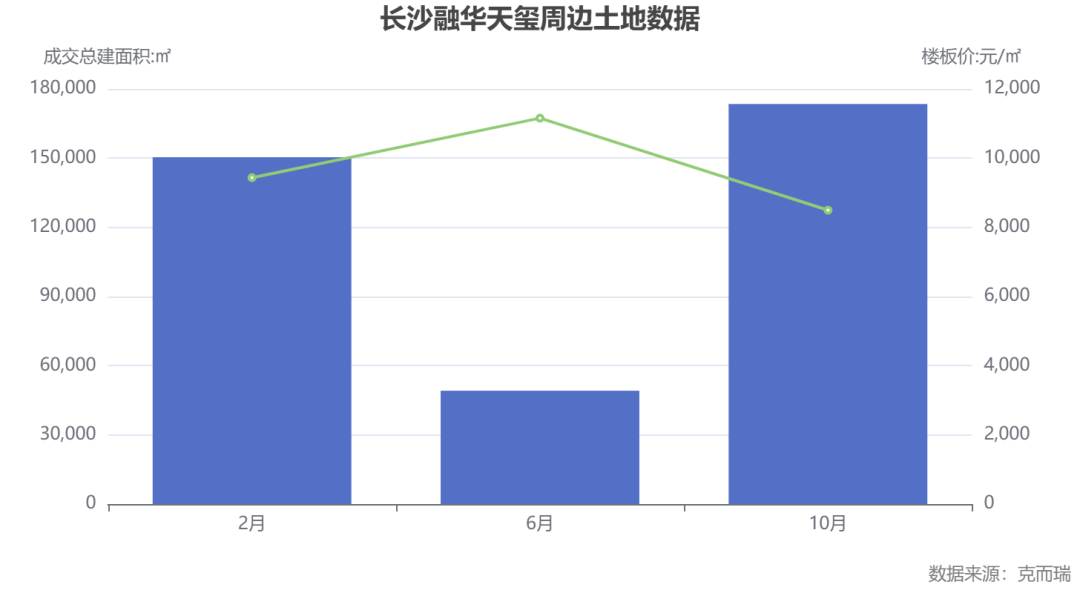 解读:克而瑞数据显示,2025年融华天玺所在区域共成交3宗核心地块。其中,融华天玺(2月成交)楼面价9435元/㎡,虽非最高,但其位于五一广场正芯的绝版位置无可替代,稀缺性远超价格本身。