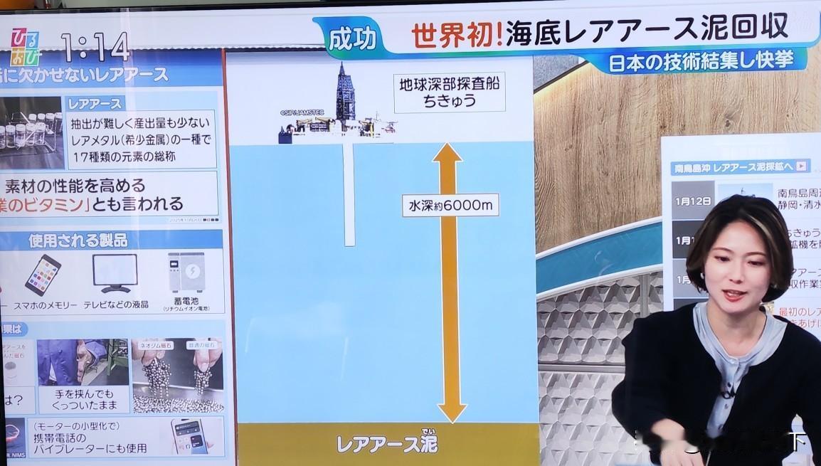 日本调查船从6000米水下挖出了稀土泥,举国欢腾。今天的午间新闻中详细报道了相关信息,还请了相关部门的负责人到演播厅介绍情况。 这是世界首次从6000米海底提取稀土泥。他们把600根10米长的采取管连接在一起到达海底完成了这次的任务。由于是使用调查船实施,为了保持船体位置稳定,通过GPS和船内系统计算方法。 他们准备2028年3月为止提出包括挖掘成本在内的採算报告。 他们想要通过这个项目拜托对咱们国家的稀土依赖。所以他们就算是错了也绝不会道歉只会一条路走到黑,看来我们还是没有把他们打疼打服。 中国加油!