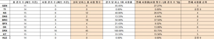 LCK杯趣味数据:教练语音使用次数DRX100%使用率 HLE和T1均为0%