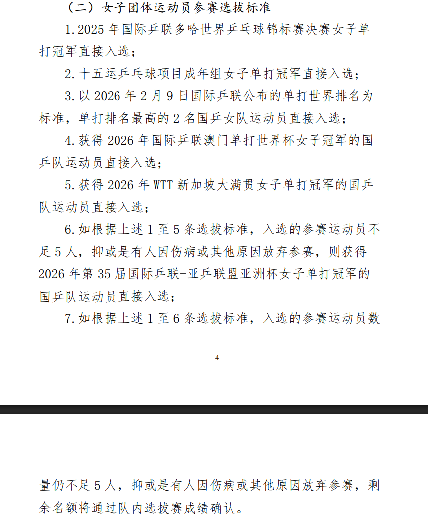 5.获得2026年WTT新加坡大满贯男子单打冠军的国乒队运动员直接入选;