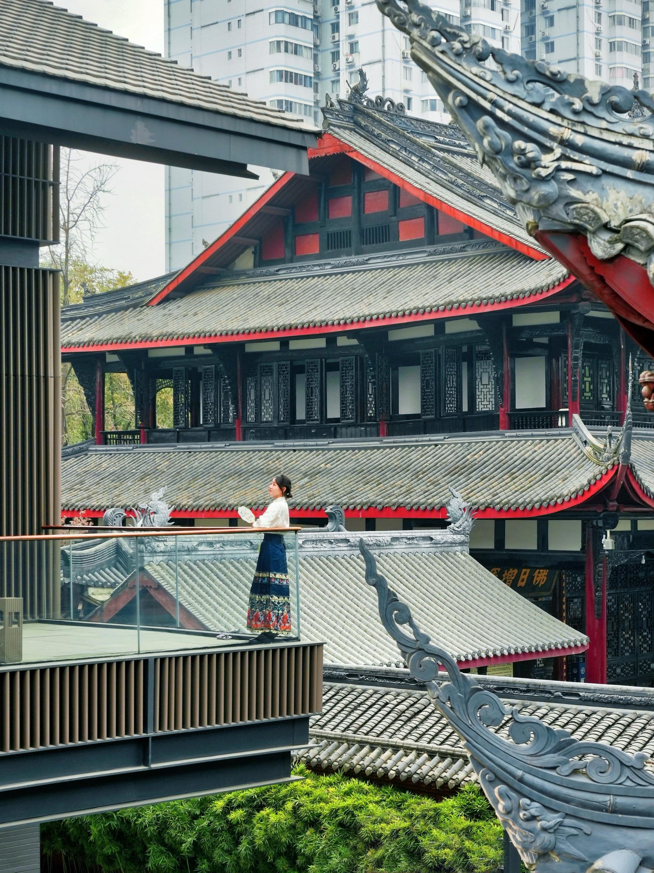 午后在漫广场喝咖啡,抬眼望去,映入眼帘的不只是现代屋檐,还有大慈寺静立了千年的飞檐。历史在这里不再是博物馆里的标本,而是化作了日常生活的背景音,偶尔转角传来的僧侣晚钟,那一刻,时空微妙地交错,让人沉醉~