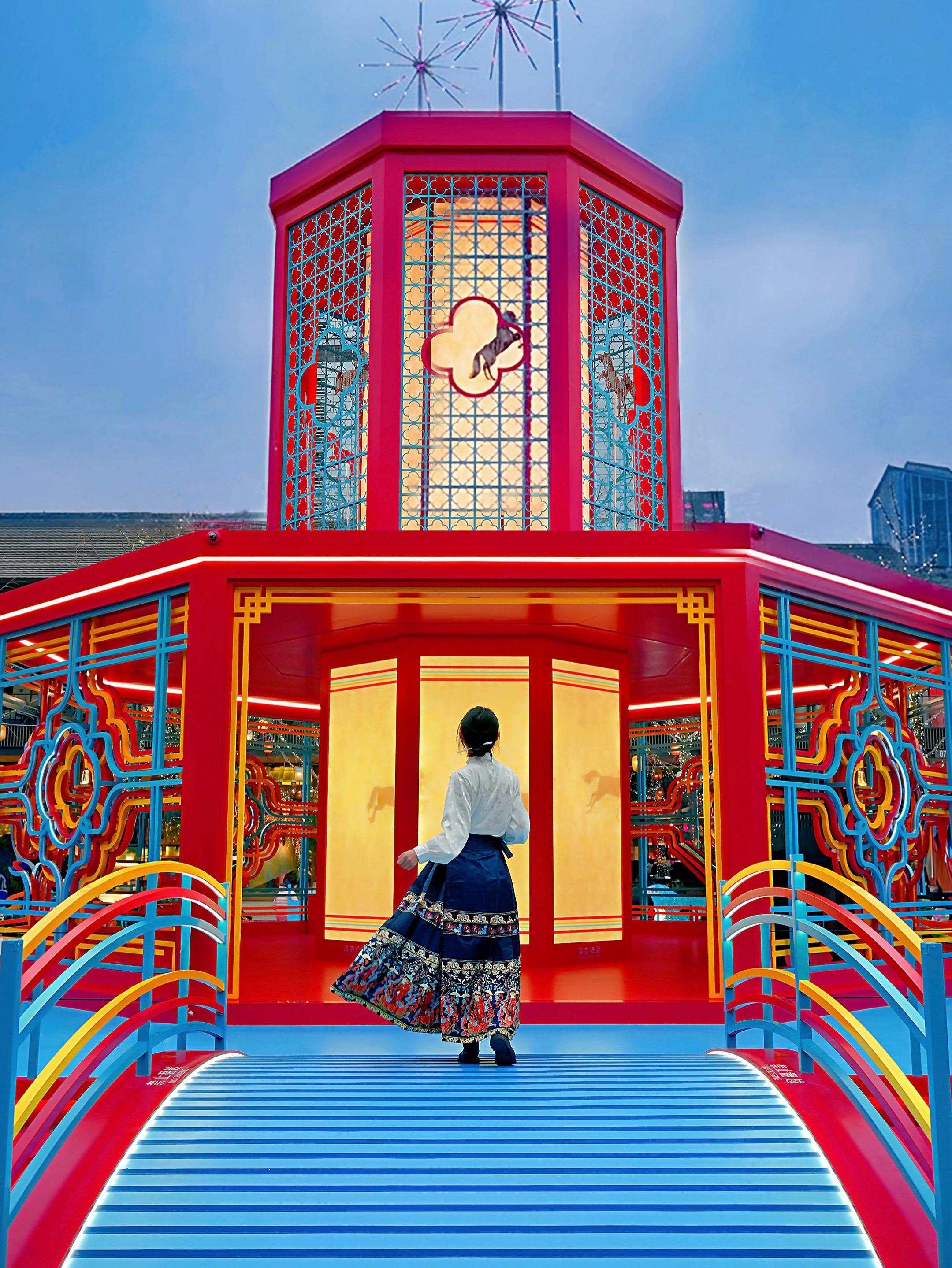 而当暮色四合,成都太古里便切换成了梦幻模式。新年氛围悄悄拉满,逛街如同漫步星光大道。而漫广场的新年“巨型