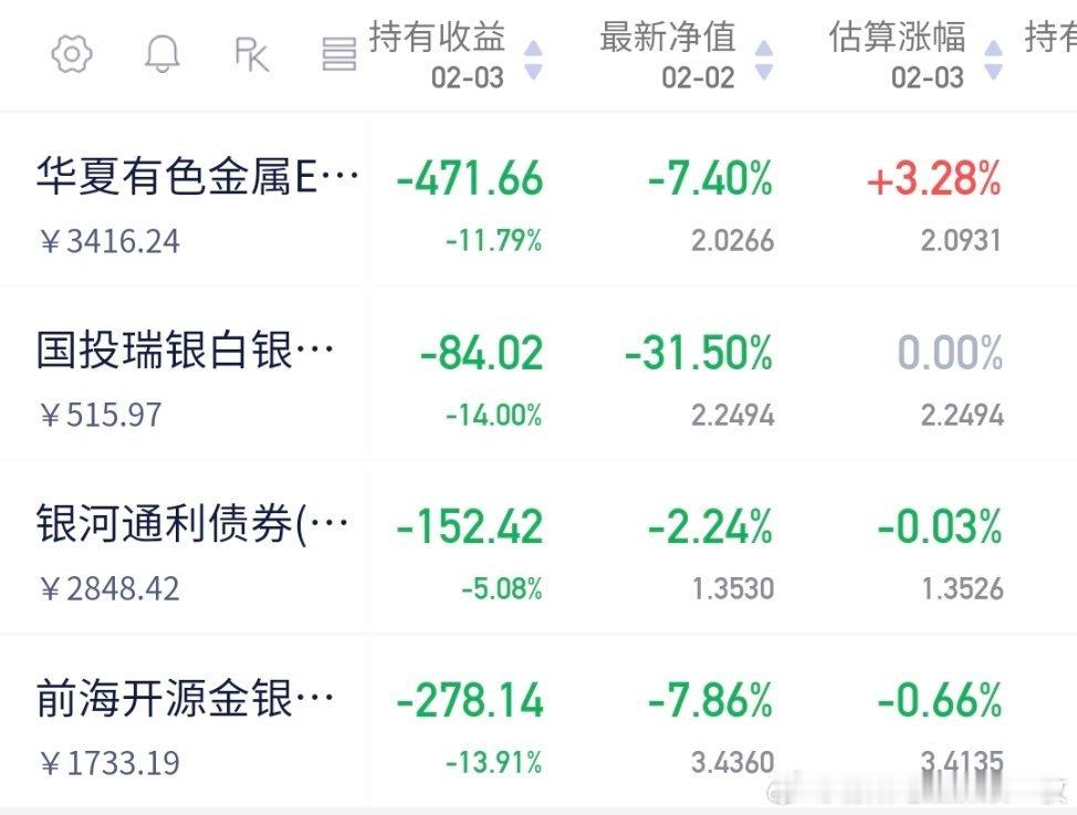黄金一夜暴涨3%上车还是跑路受黄金白银大跌影响,周五周一两天,直接干完了所有收益,基金也都是绿的发光