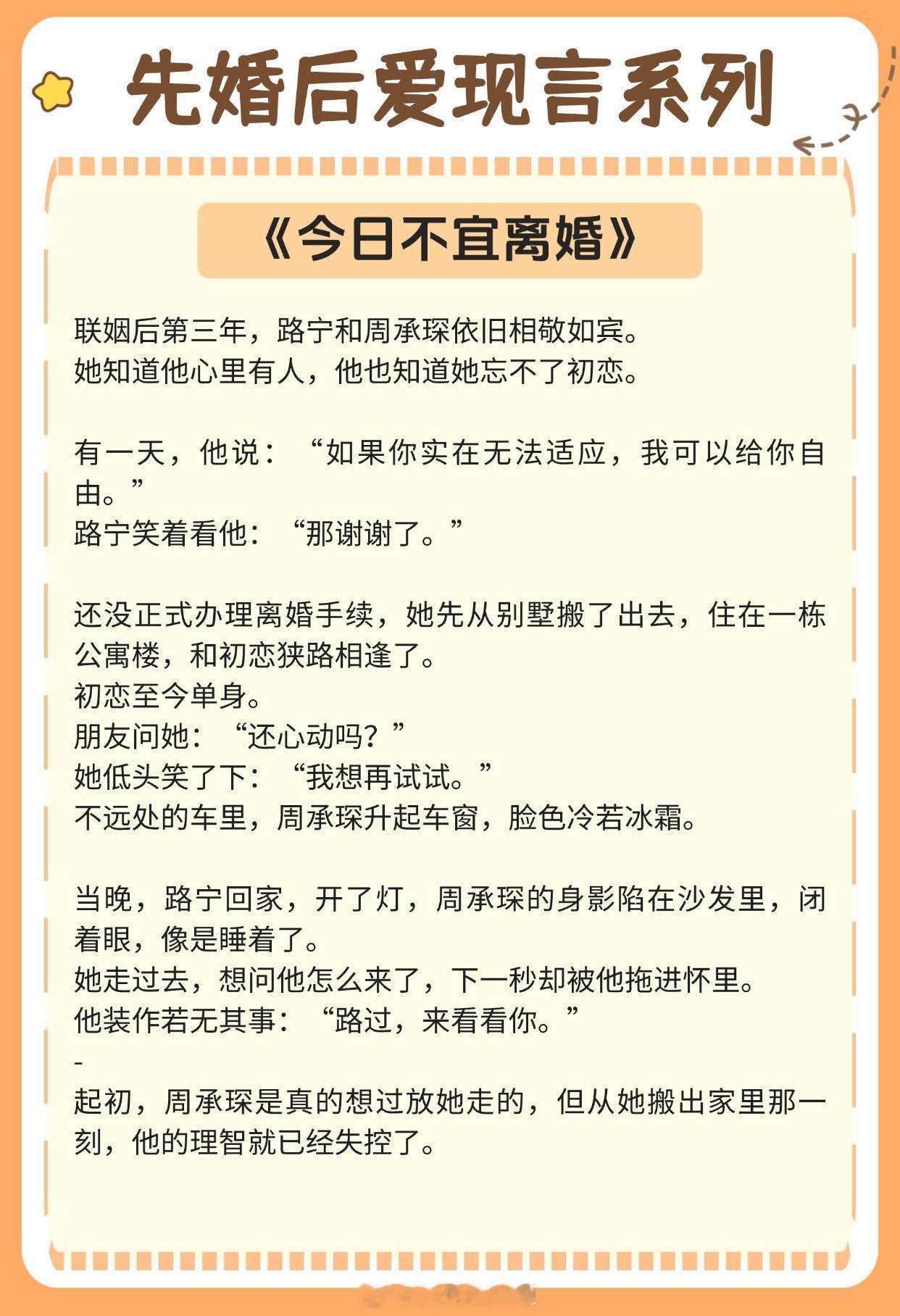 《执迷》作者:梦筱二《月光盒子》作者:半截白菜《不可以离婚》作者:月下乌尤《今日不宜离婚》作者:北途川《相克》作者:冬日牛角包《三分乖》作者:韩大白《明明,明明》作者:姑娘别哭《狩婚》作者:尘灰《风轻浪细》作者:瑞曲有银票推文推文言情小说推荐