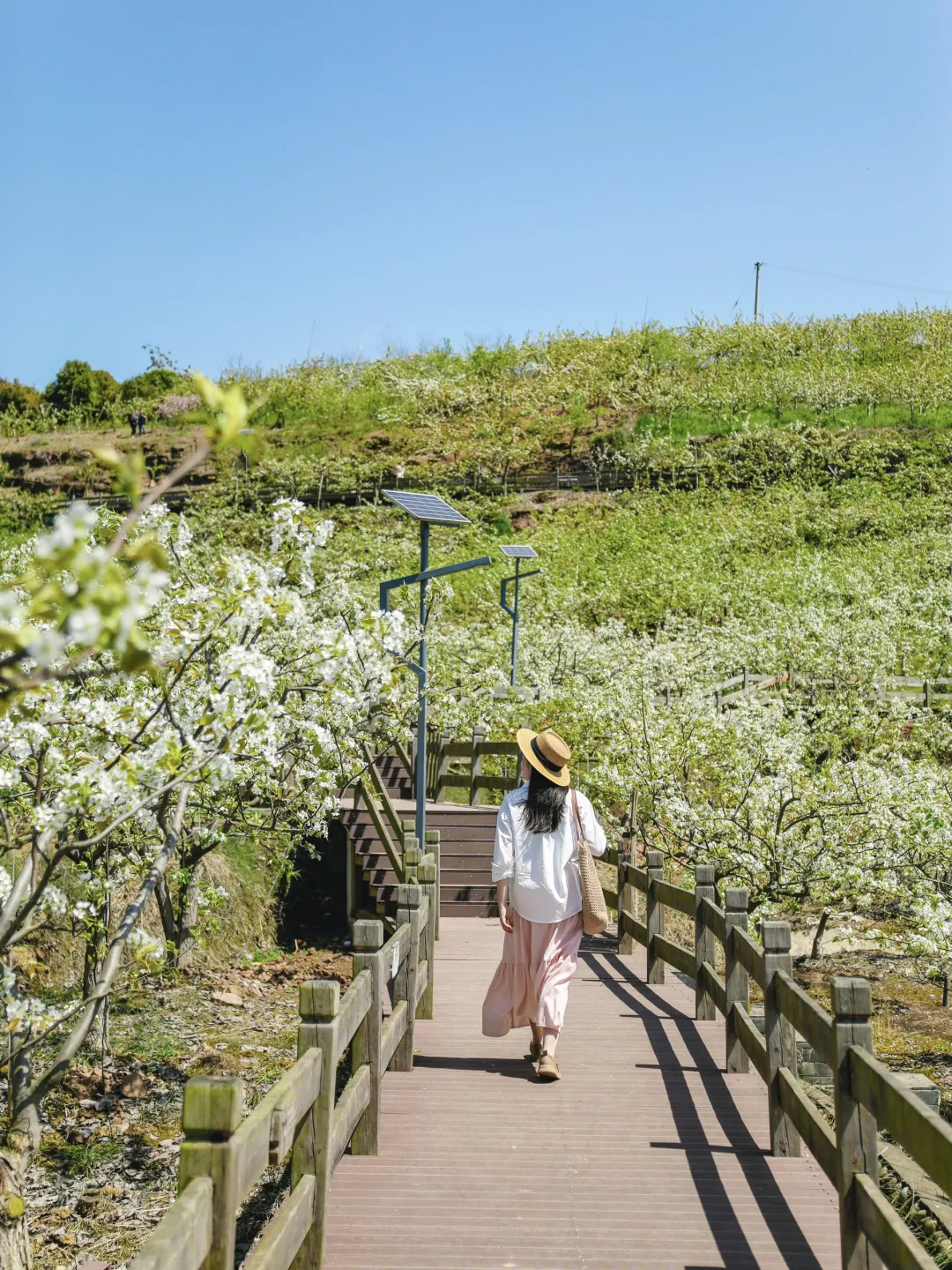 ✅这里主要是赏梨花,有木栈道和观景台,视野开阔🌸适合带老人小孩来轻徒步🌿