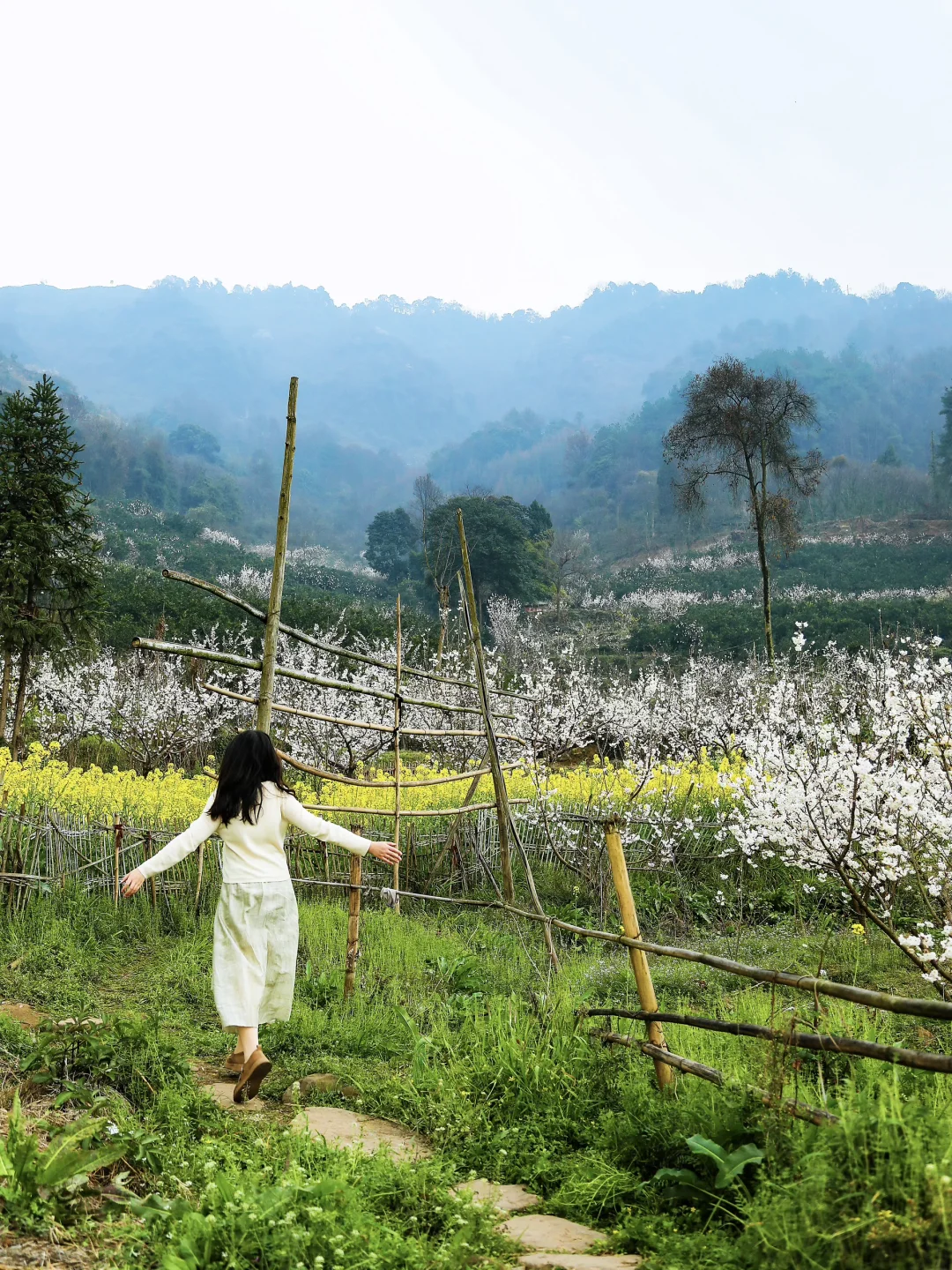 ✅ 徒步旅行5公里,沿路🈶油菜花、梨花、桃花🌸