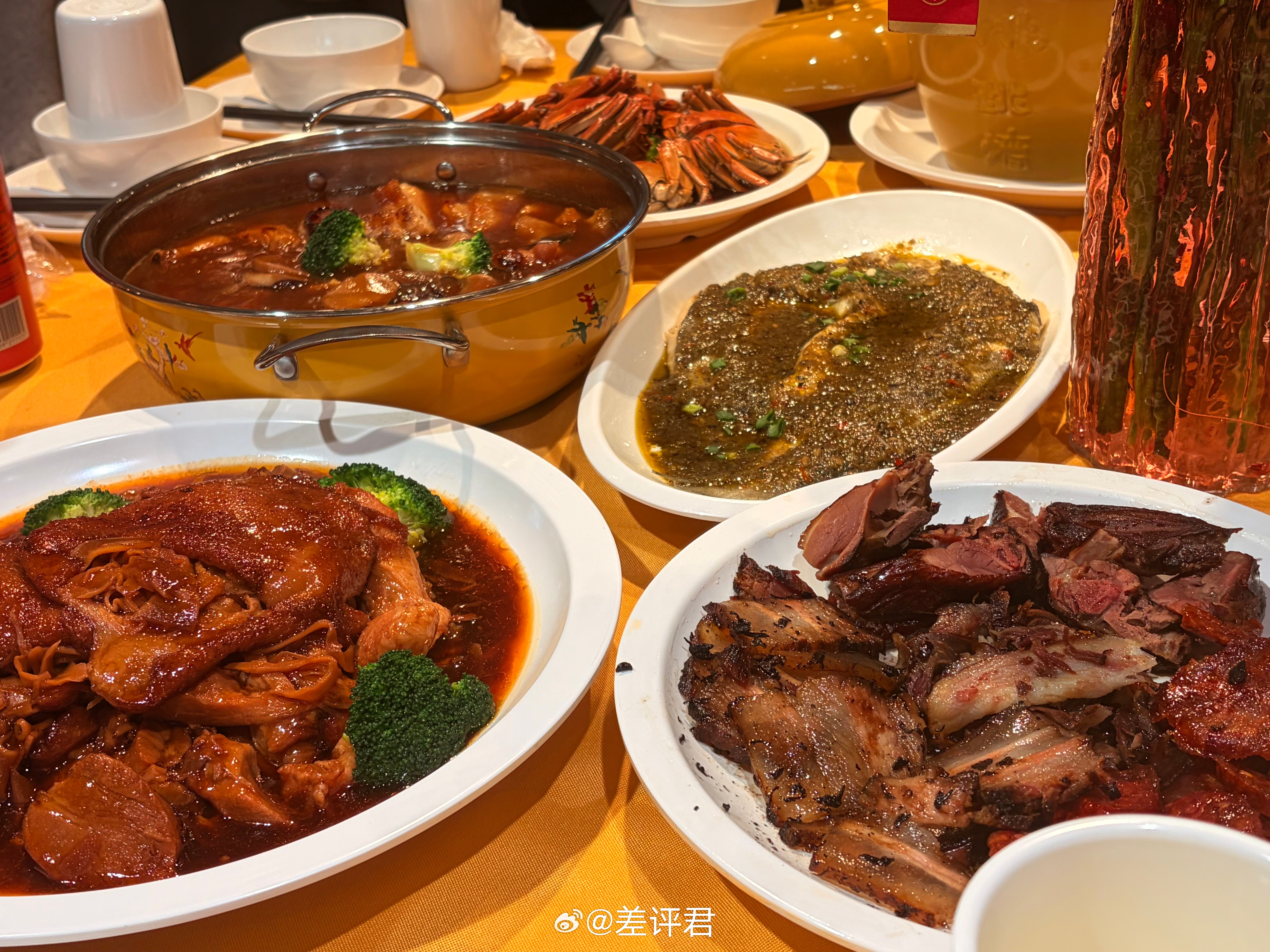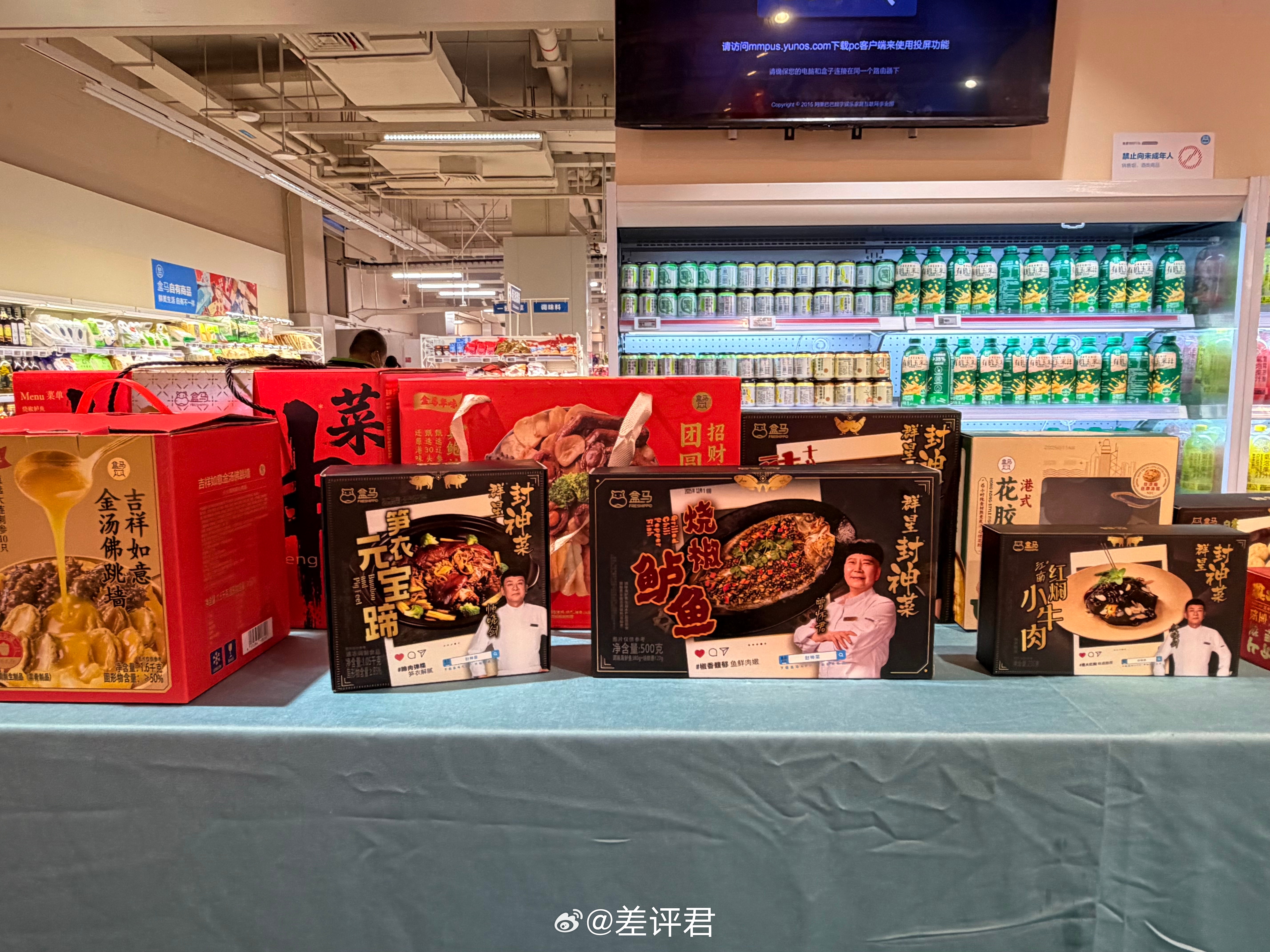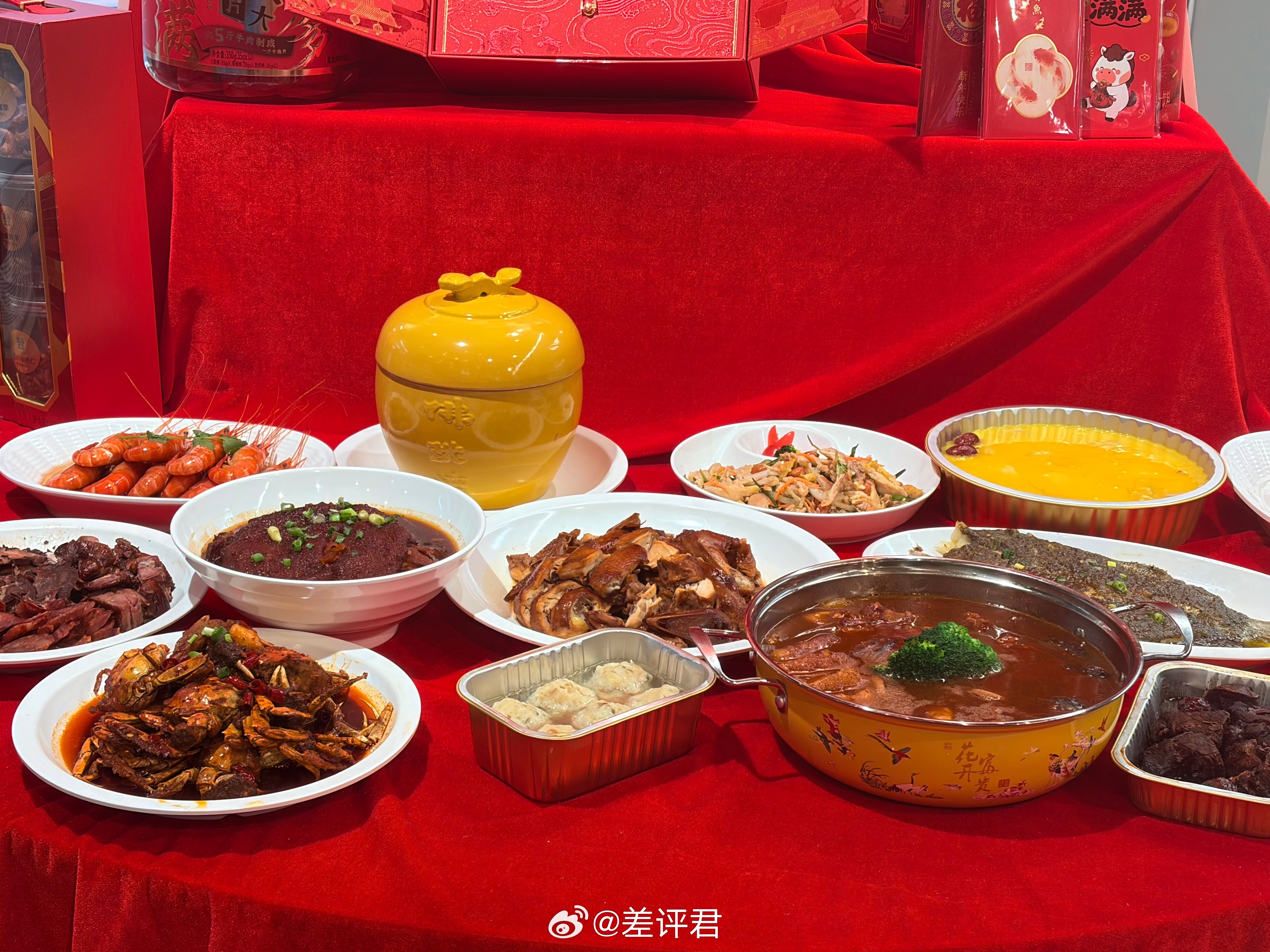 #差评在现场# 虽然还没放假,但先吃上盒马的年夜饭了~蹭上了今年的年夜饭品鉴会。满满一桌子,20多道菜,都替大家吃了一遍。必须推荐的就是和一饭封神名厨合作的“封神菜”,上桌就是米其林大厨同款味道,无情吊打了差评君的厨艺。爱吃辣的就闭眼入曾怀君大厨的香辣蟹,不能吃辣的必冲帅晓剑大厨的笋衣元宝蹄,入味脆爽的笋配上酥烂的猪皮,简直一绝。这一桌子的酸甜辣咸鲜麻酥脆嫩滑软糯绵爽韧弹,只有吃过的人才懂~