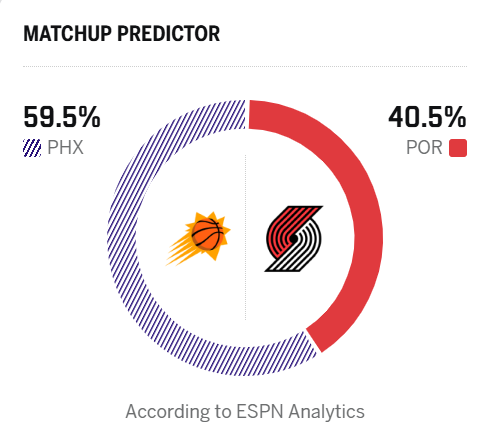 ESPN预测明日比赛:太阳胜率59.5%,开拓者胜率40.5%