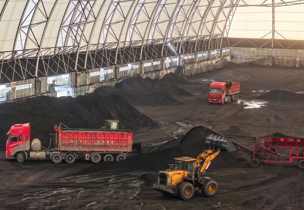 四川高兴煤炭储备基地内,卡车正在转运煤炭。邱海鹰摄