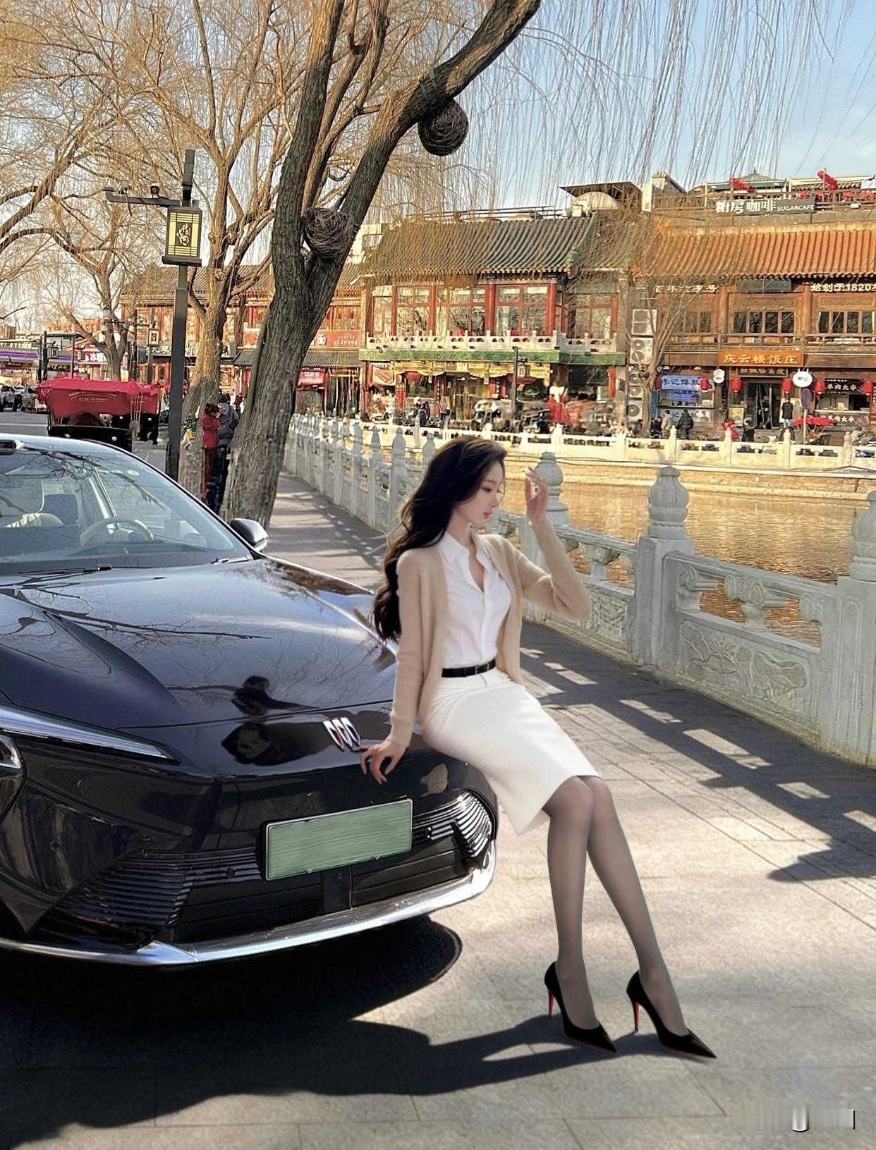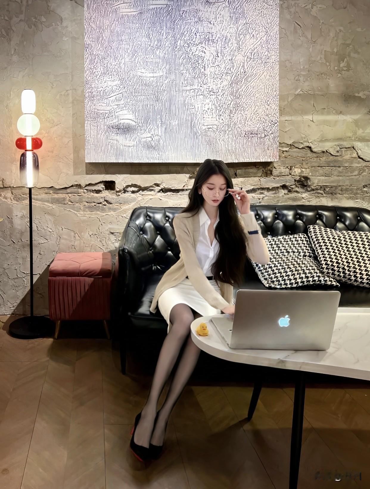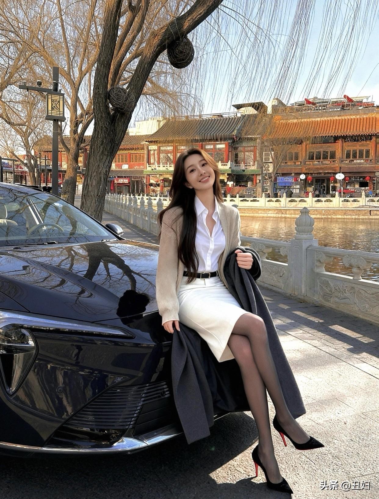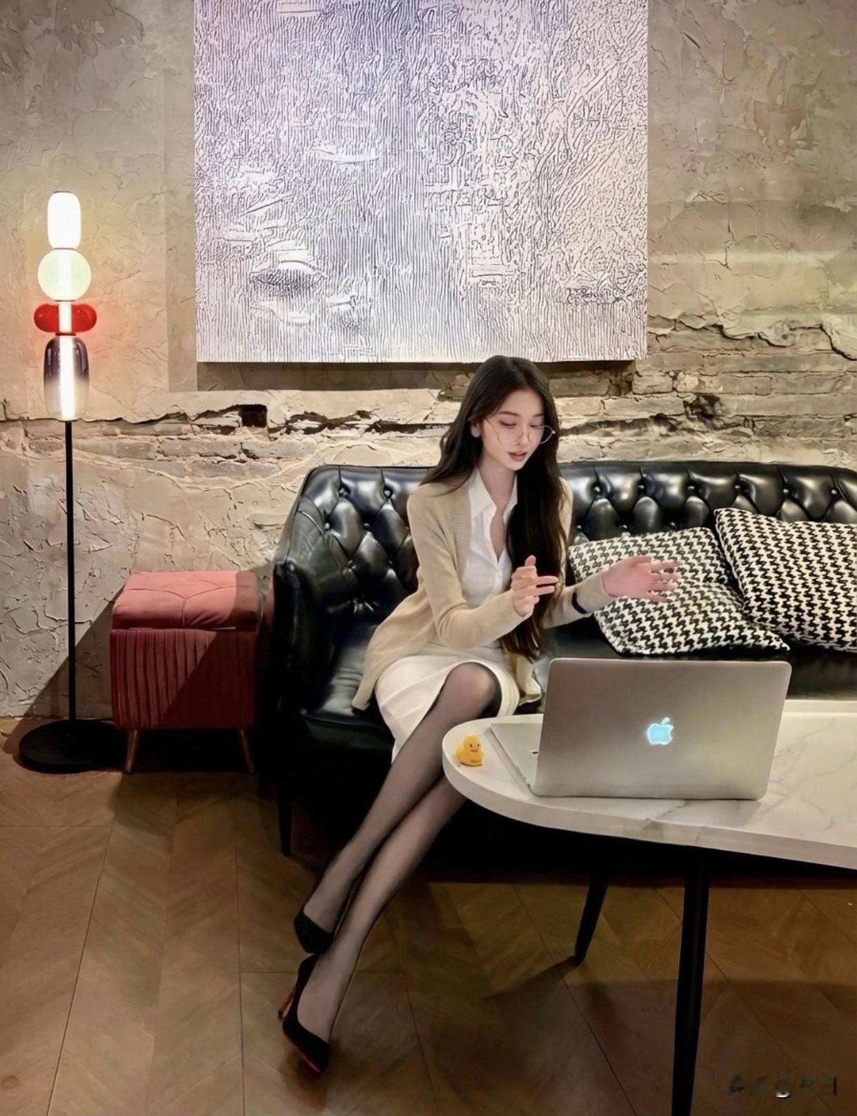 制服搭配黑色高跟鞋是什么体验呢?在视觉上有拉长身形的效果。