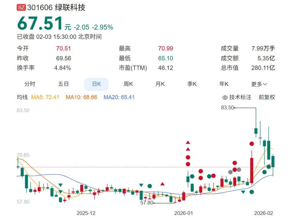 有了新故事,2025年1月2日至今,绿联A股股价大涨80%,截至2月3日收盘,达到280亿元。