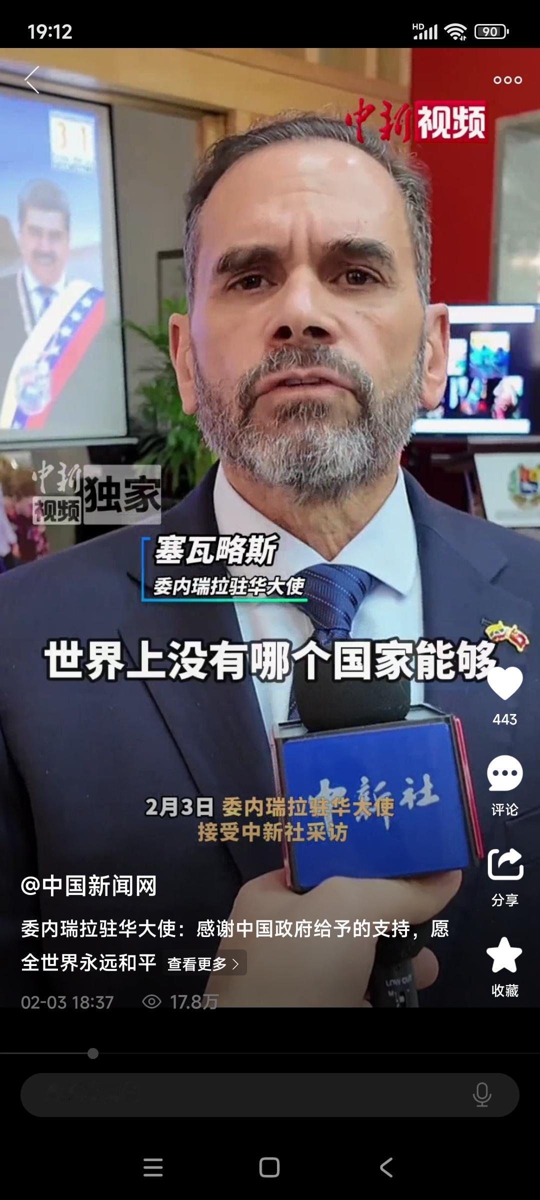 2月3号,委内瑞拉驻华大使塞瓦略斯接受了记着采访,塞瓦略斯表示非常感谢中国多年的支持,中国是一个尊重国际法的伟大国家,主张多边主义发展化,在国际上维护和平做出了积极的贡献!中国和委内瑞拉的的合作关系在世界上没有哪个国家能破坏的。大使能说出这样的话,透漏出现在的委内瑞拉的态度(罗德里格斯代总统)和思想战线,是不是沿着马杜罗的道路走?现在不好定论,都知道,中国大部分的石油来自委内瑞拉,现在被美国制权了,本身,美国打击委内瑞拉的目的,就是控制委内瑞拉的石油给美国,然后美国在卖给中国,挣中国的钱不论,还要想要挟控制中国听它的话。现在看看美国卑鄙至及吧。也许代总统从今天开始正式行使总统职权打个擦边球吧,毕竟委内瑞拉欠中国好多的债务!
