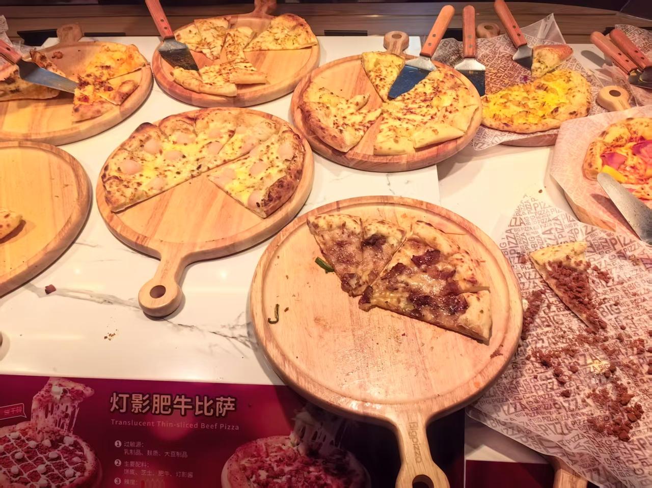 平常都是吃六七分饱,今天中午却吃撑了,晚上都不用吃饭了。 今天中午和孩子们去吃披萨自助,78块钱一位,这也是老聂第一次吃披萨自助餐。 老聂感觉最好吃是榴莲披萨、鸡腿、烤鱼、烤鸡翅。 既然花了钱,就想多吃点,不知不觉的就吃撑了。 每次吃自助餐,都管不住自己的嘴。