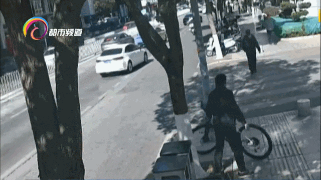 二十分钟后,一名骑车的男子出现了,还观察了何先生的自行车一会儿。