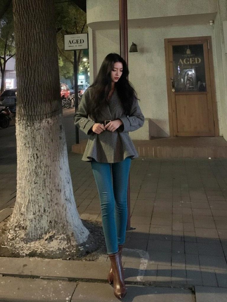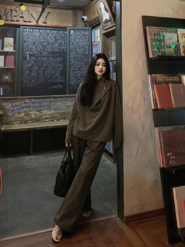 这套咖色系穿搭高级感拉满!双面呢大衣的深浅棕拼接自带质感,内搭全黑组合利落又显瘦
