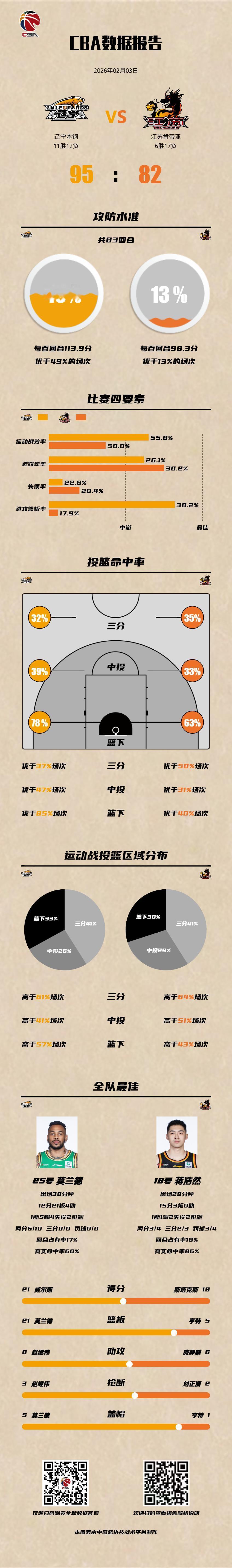 辽宁本钢 95-82 江苏肯帝亚 辽宁男篮vs江苏男篮 辽宁本钢:威尔斯21分,赵继伟16分7篮板8助攻3抢断,莫兰德12分21篮板4助攻5盖帽; 江苏肯帝亚:斯塔克斯18分,蒋浩然15分3篮板,庞峥麟10分4篮板6助攻。以城之名