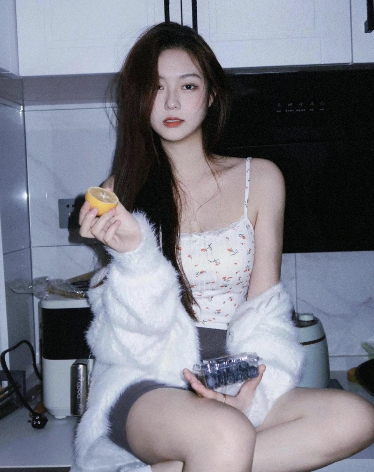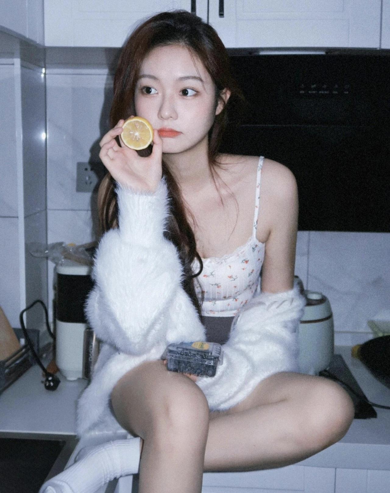 冬日暖阳下,少女与橙子相伴,清新自然,温暖如春。